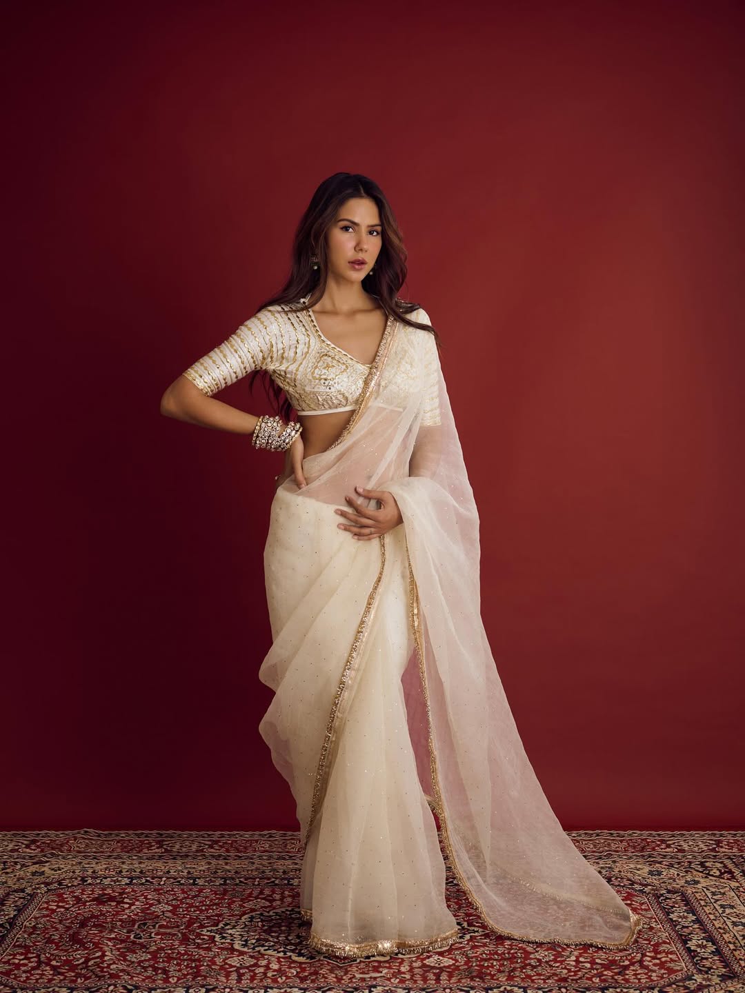 Actress Sonam Bajwa never fails to make a statement, whether on-screen or on the red carpet. Recently, she stunned fans with her dazzling outfit a beautifully tailored ethnic ensemble that perfectly balanced tradition and glamour. With her confident aura and flawless fashion sense, Sonam continues to reign as one of the most stylish actresses in the Punjabi film industry.