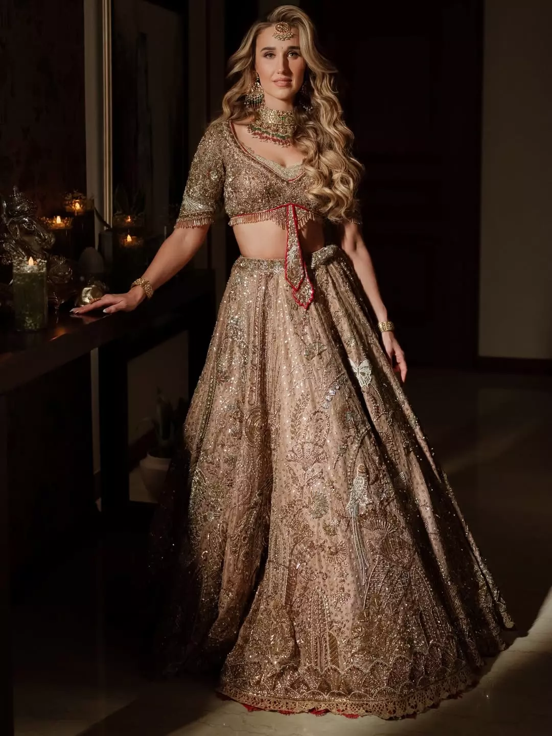 In one of the earlier Instagram photos, Sophie was seen posing gracefully in a beautifully crafted lehenga. The dress looked rich and festive, filled with fine embroidery and elegant details.
