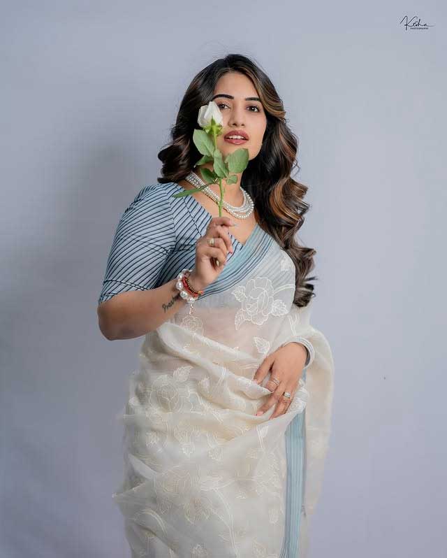 who styled her hair beautifully. The makeup and styling were done by another talented artist @indhu_makeover1376.