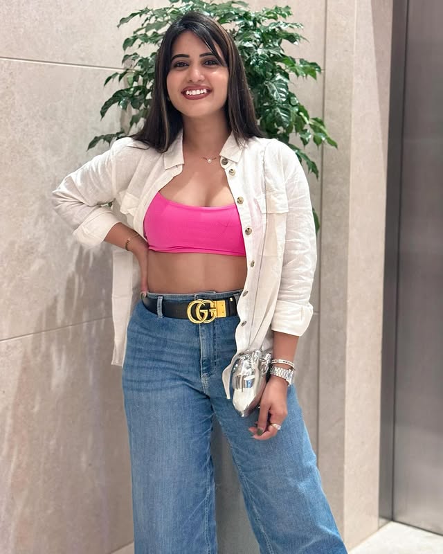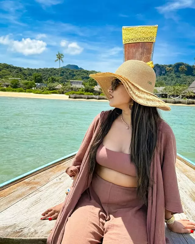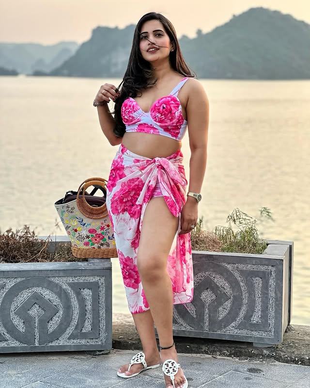 Sravanthi Chokarapu lounges in a breezy beachside hammock like a sea nymph at rest, her white crochet halter top and flowing tiered skirt catching the salty breeze as waves crash against rocky shores behind her. Barefoot and beaming with effortless joy, one arm draped casually while the turquoise Arabian Sea stretches endlessly—Blessing your feed with some blue. The Telugu reel star and Love You Zindagi actress turns a simple Goa afternoon into pure coastal serenity.