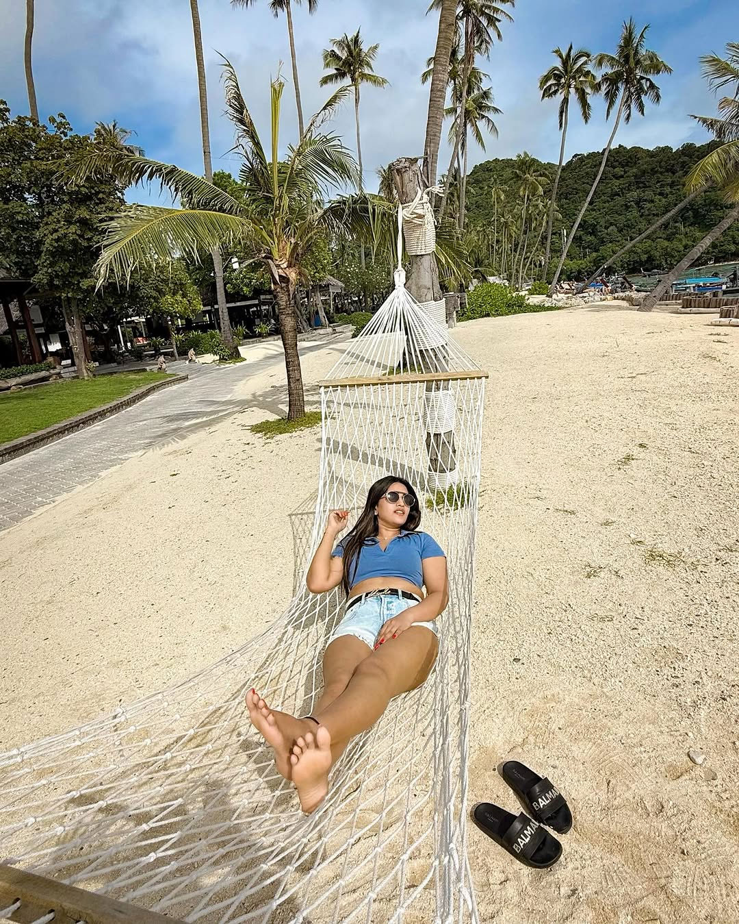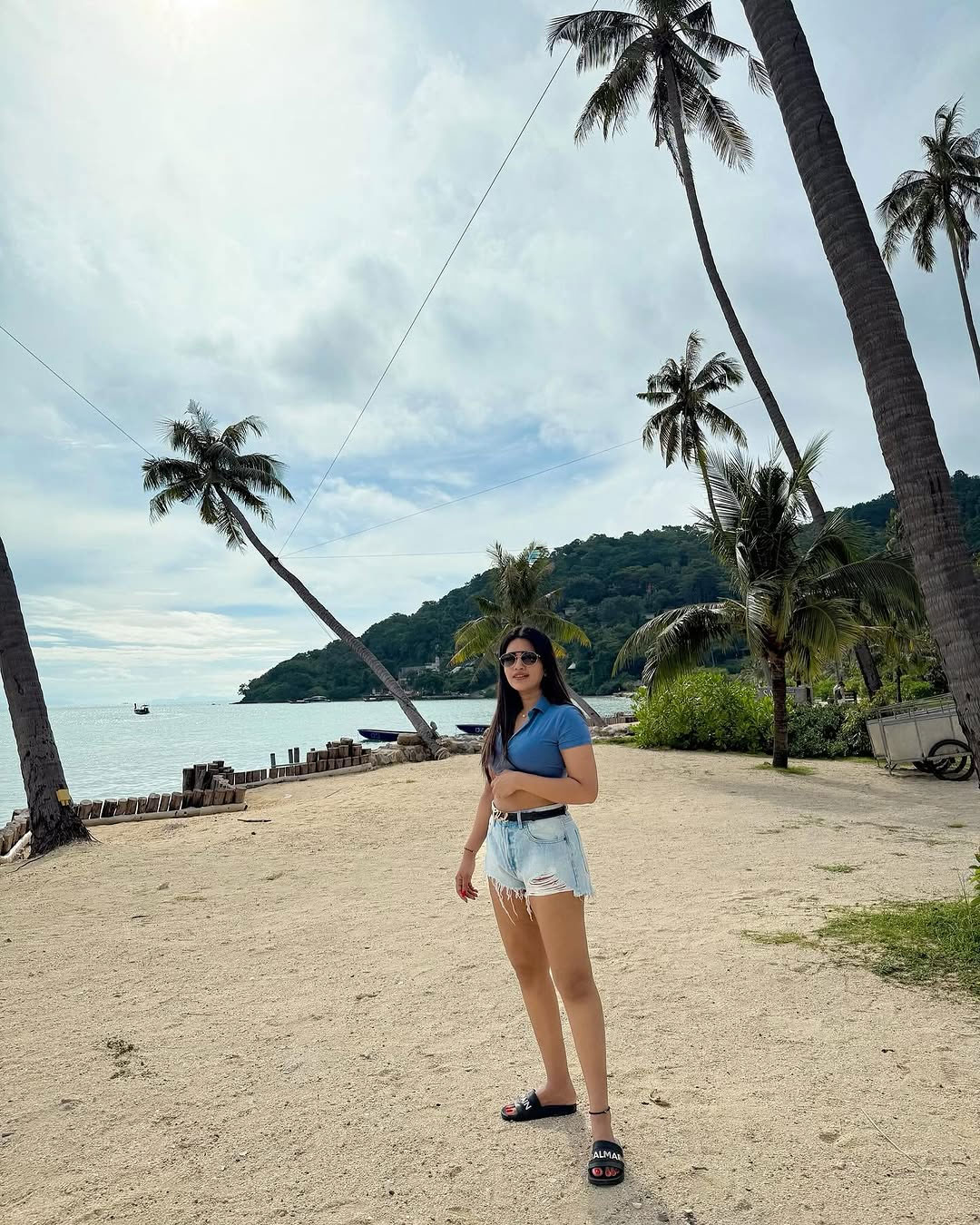 By: Tupaki Desk | 13 May 2025 10:54 PM ISTThe popular anchor and television personality Sravanthi Chokarapu greeted her fans with a fresh "Hello again" and a wave emoji, giving us all tropical vibes and vacation goals! Dressed in a stylish blue crop top paired with trendy distressed denim shorts, Sravanthi looked effortlessly chic against a backdrop of lush greenery and sunny skies. Her cool shades and confident pose just added to her charm don’t you think she looks like a total beach boss?