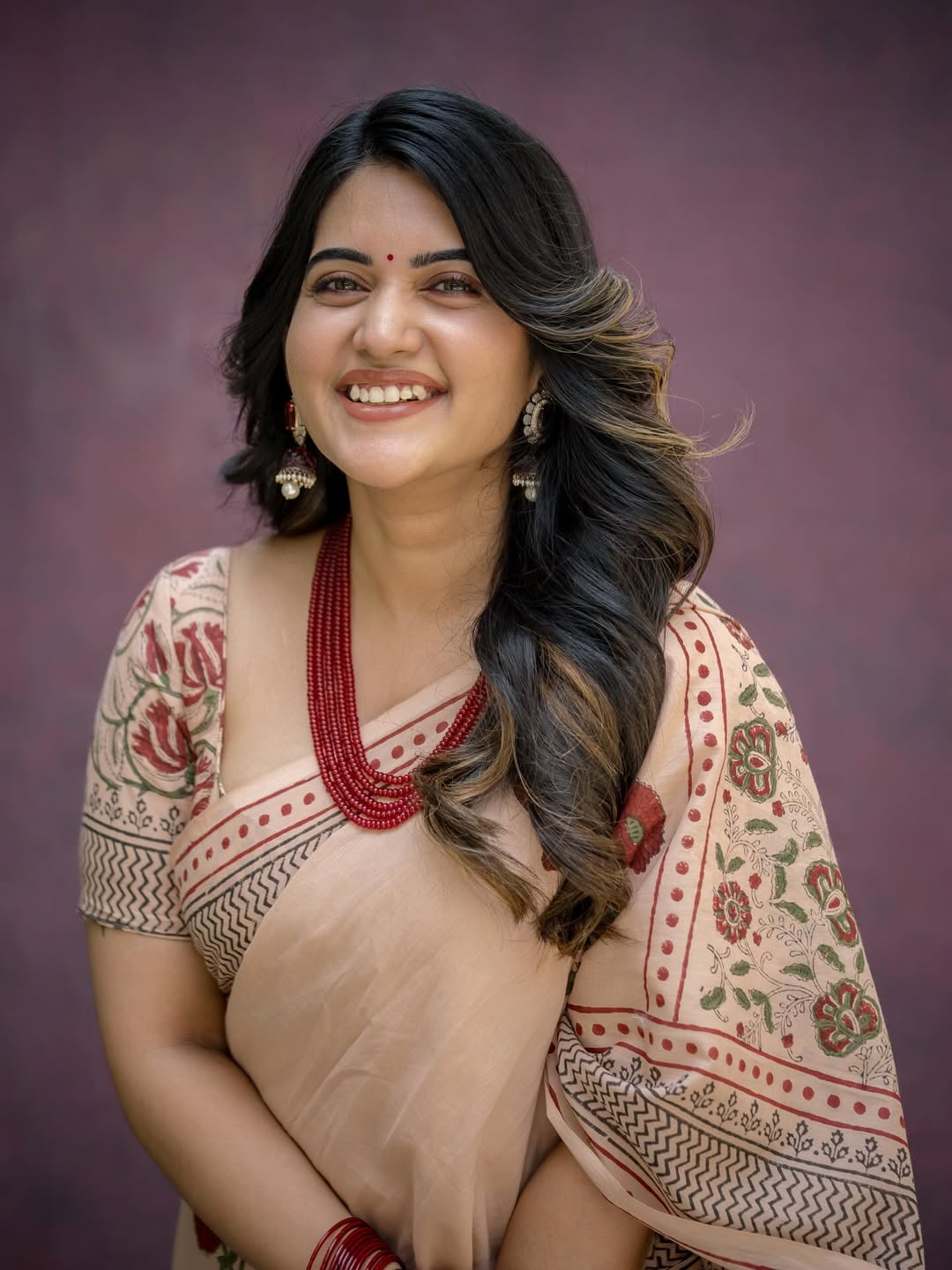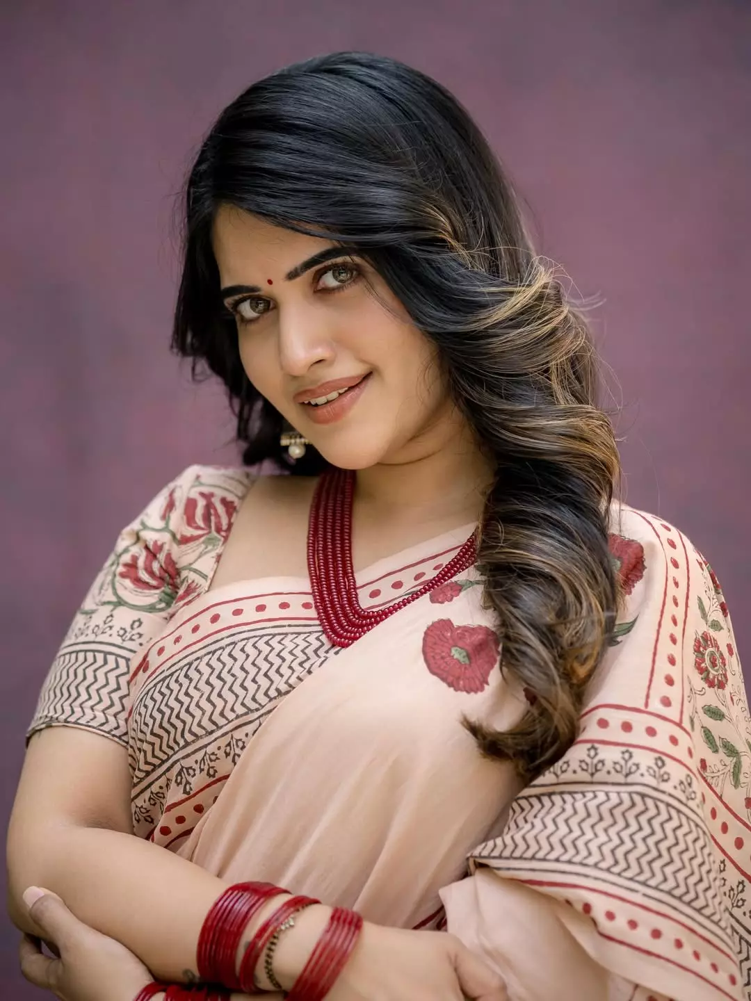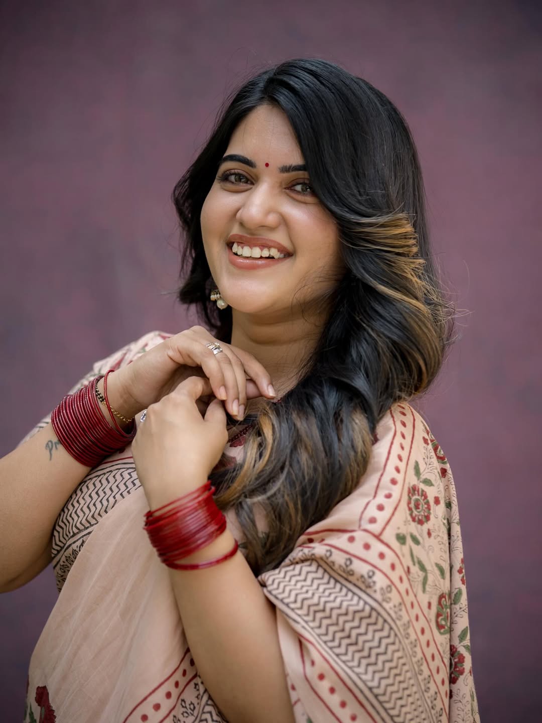 By: Tupaki Gallery Desk | 21 April 2026 9:15 AM ISTSravanthi Chokarapu radiates timeless elegance in this captivating frame, draped in a soft beige saree that blends tradition with understated glamour. The delicate prints and earthy tones enhance her natural beauty, while her poised expression and graceful styling make the portrait instantly striking. Her choice of classic red bangles and minimal accessories adds a subtle festive charm, elevating the overall aesthetic. 🥀 ✨