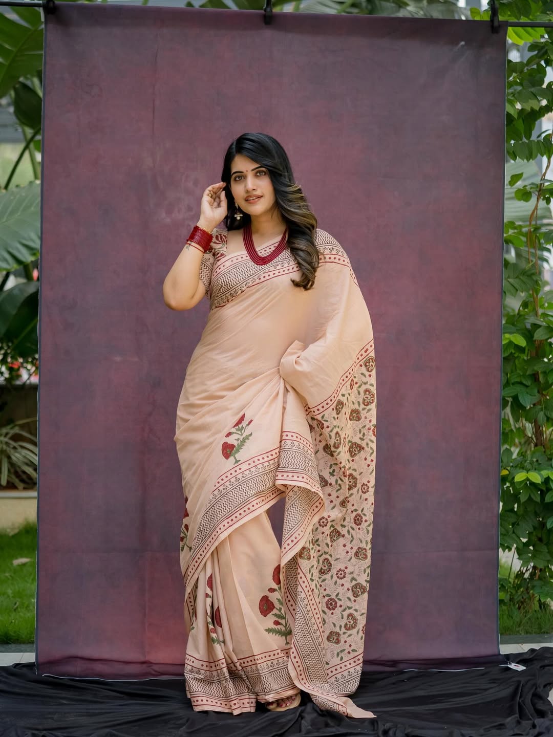 Her choice of classic red bangles and minimal accessories adds a subtle festive charm, elevating the overall aesthetic. 🥀 ✨