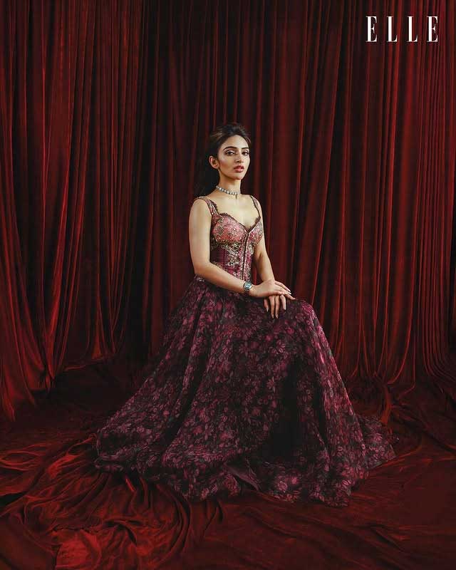 Sreeleela Looks Gorgeous in Orange Floral Dress for ELLE India Cover
