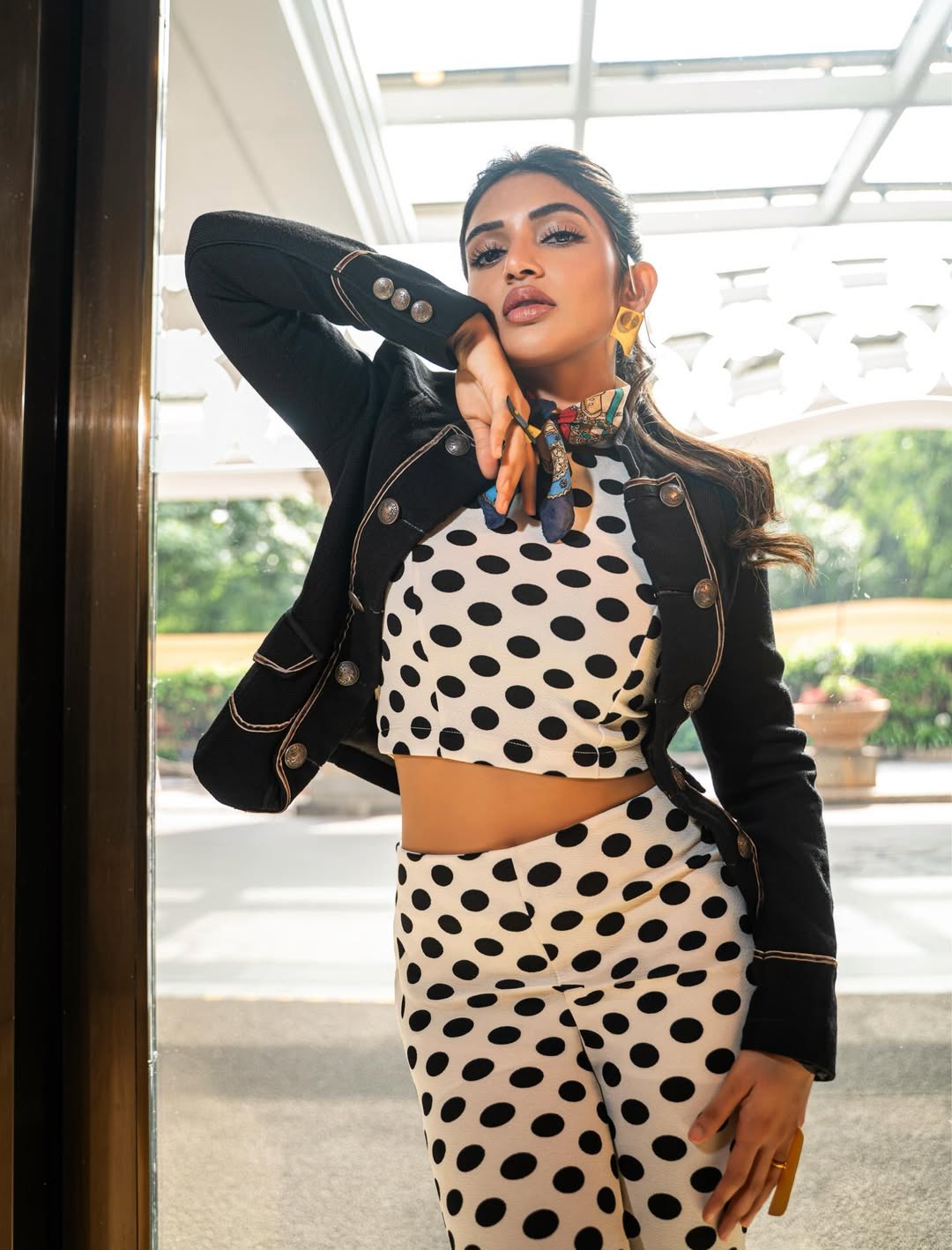 Sreeleela enchants in this ethereal photo, draped in a luxurious lavender and pink embroidered saree with intricate zari work, sequins, and pearl accents. Her soft, glowing makeup, subtle bindi, and gentle smile exude grace and poise as she poses with closed eyes and crossed arms, radiating timeless elegance and youthful charm against a warm neutral backdrop. #MARCH19
