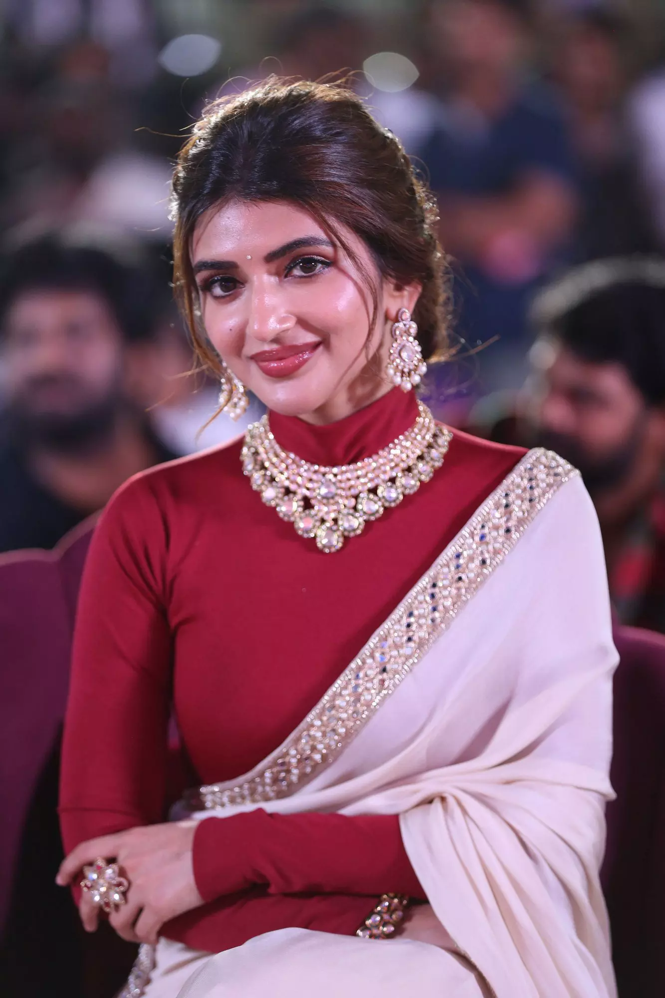 The Ustaad Bhagat Singh pre-release event was a star-studded extravaganza, and all eyes were on Sreeleela, who lit up the stage with her radiant presence.