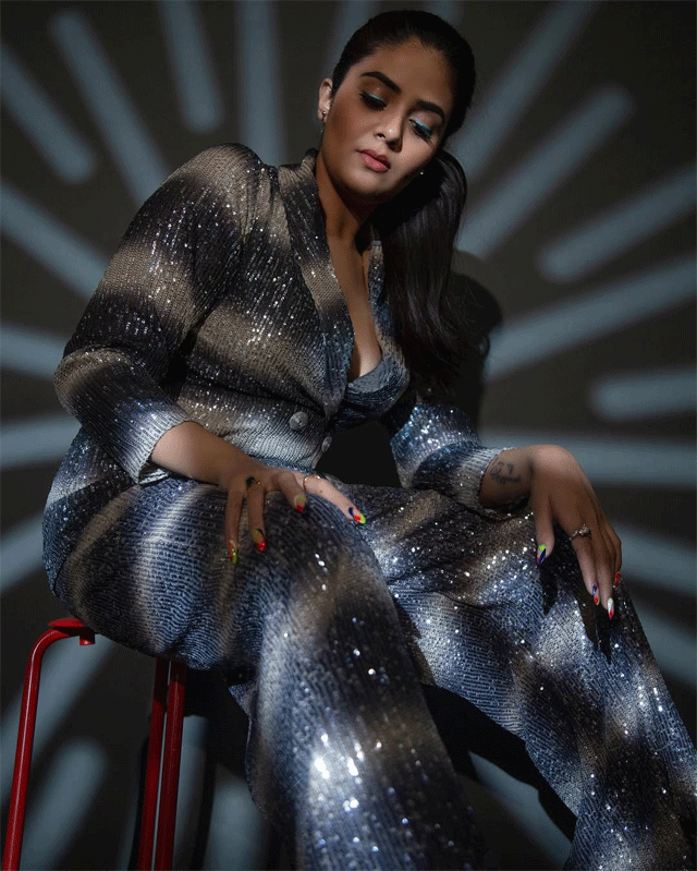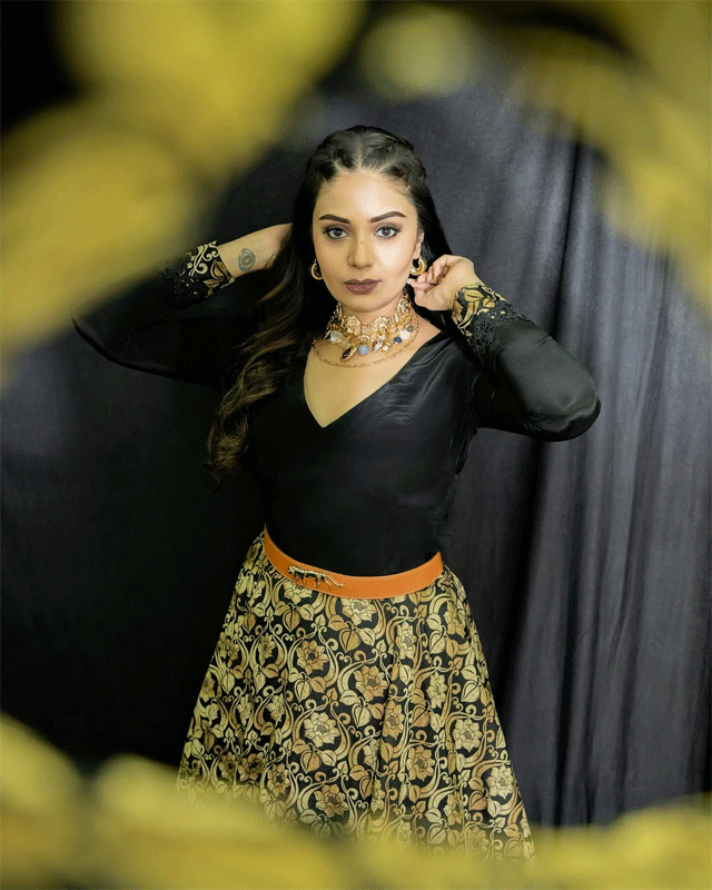 Sreemukhi is an absolute vision in black, blending timeless tradition with fierce modern edge.