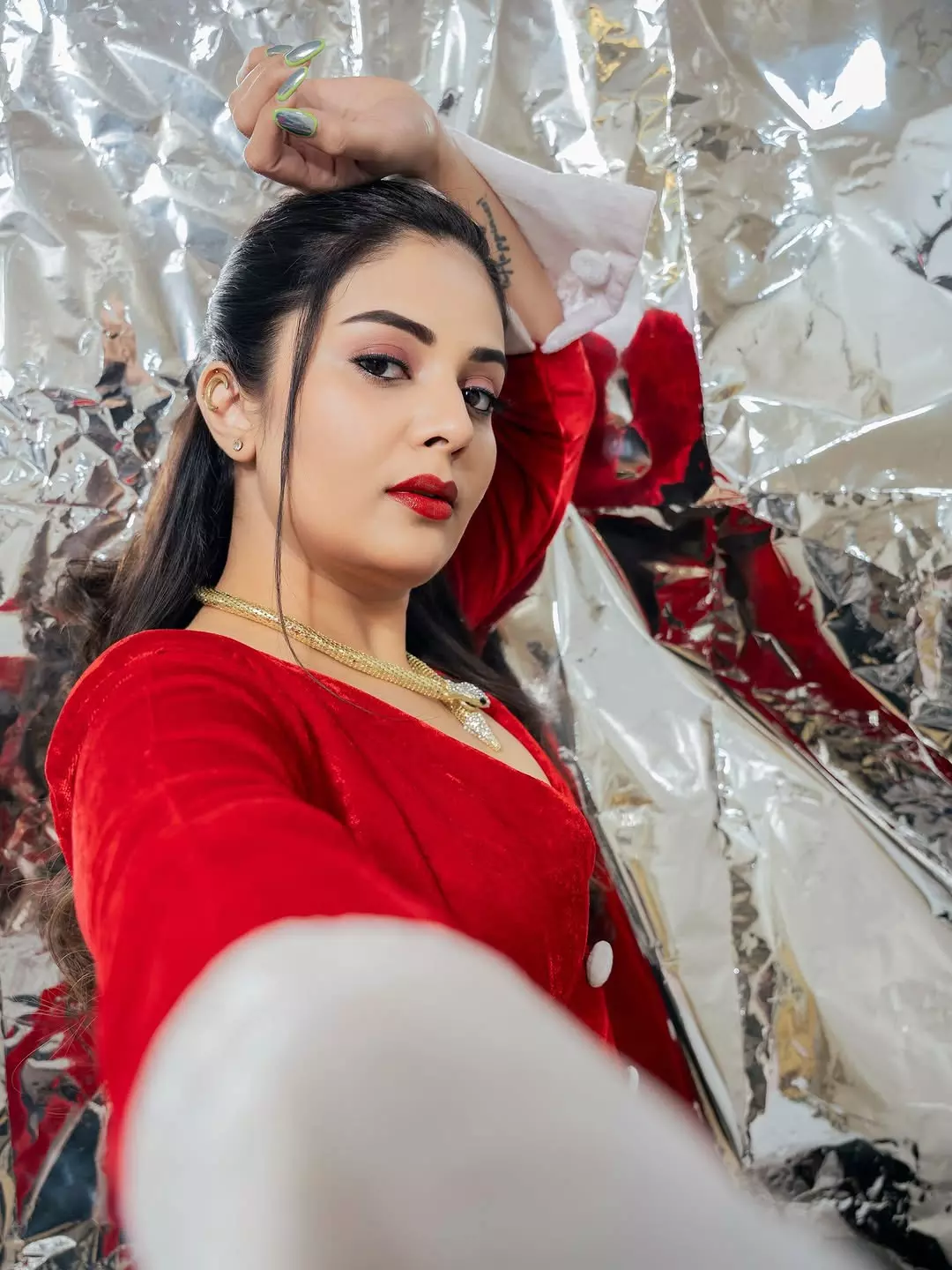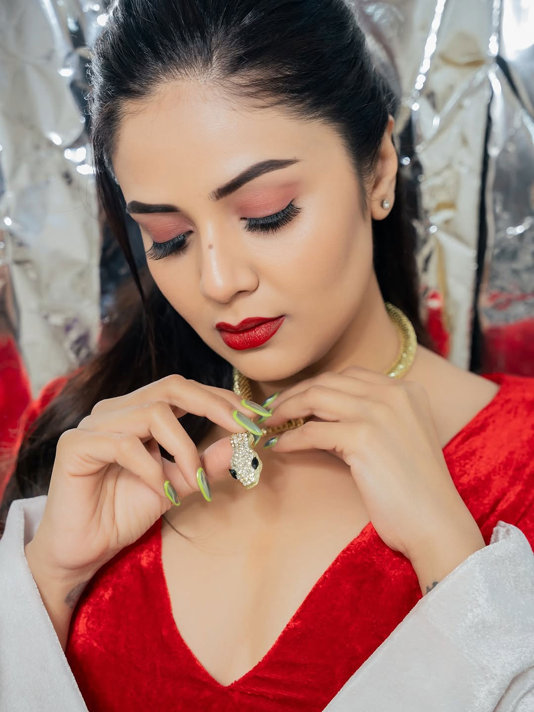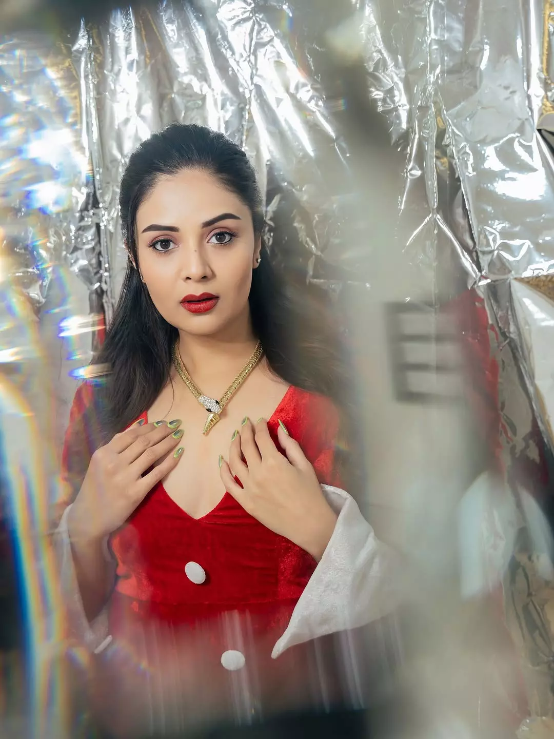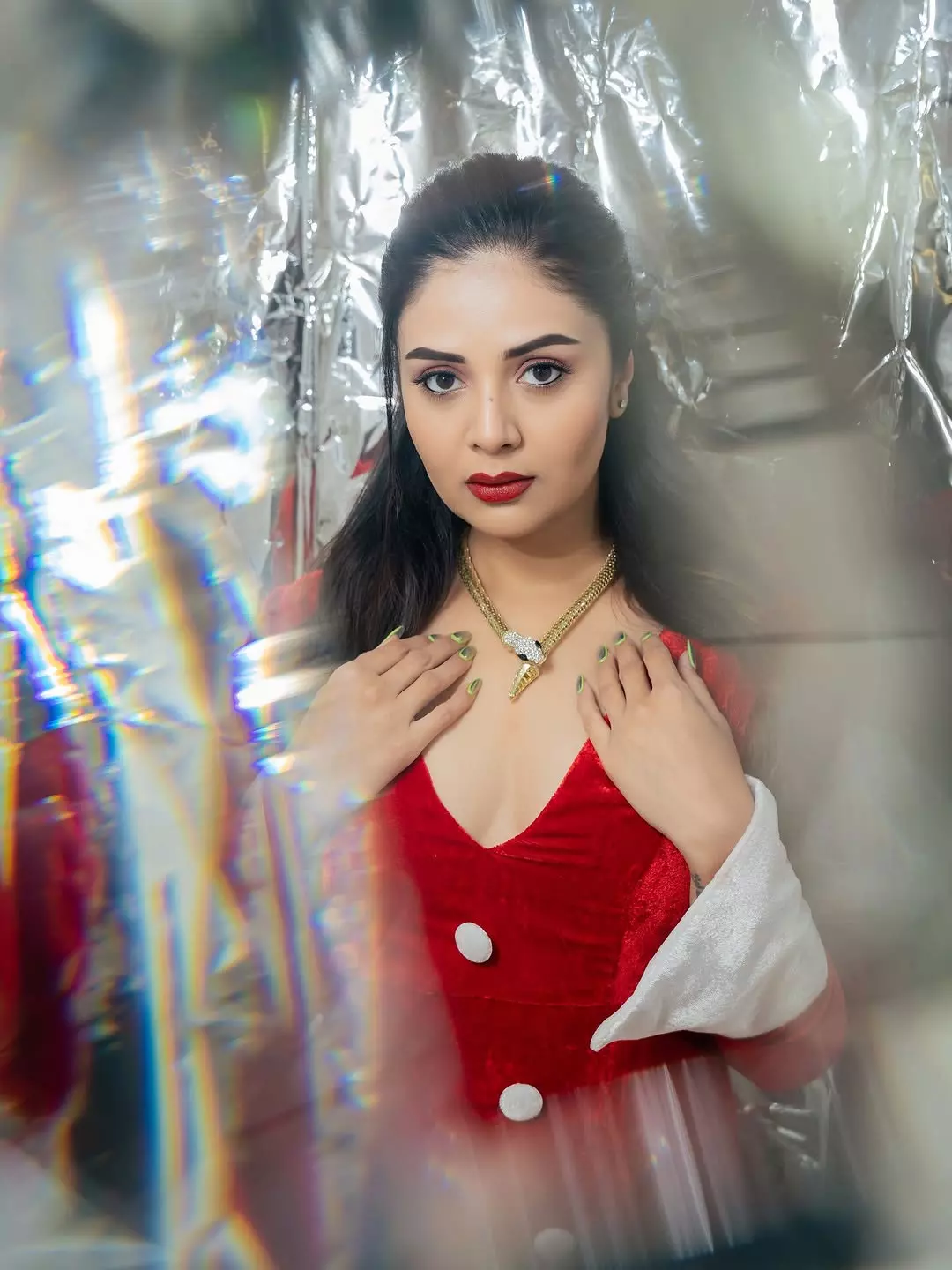 Sreemukhi recently shared a dazzling new picture on her Instagram with the caption “❤️✨”, letting the image speak for itself. Her look was styled by Greeshma Krishna while her elegant red velvet dress with white button detailing was designed by Designs by Snowbeadz. The photograph was captured by Manoj Gangula with her glam look completed by Elegant Makeover Studio for makeup and Mahesh Ravulapalli for hair.