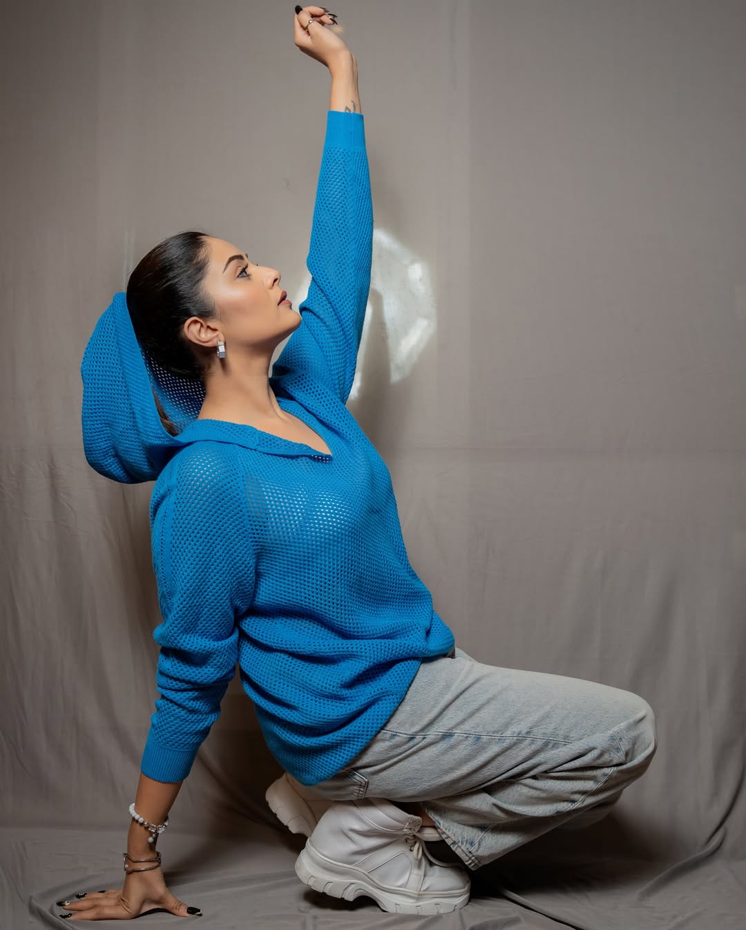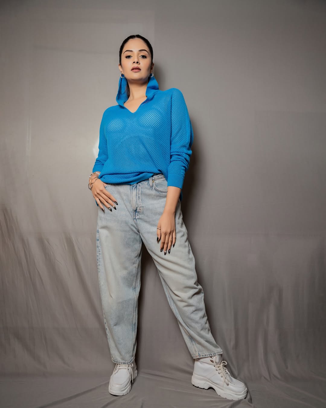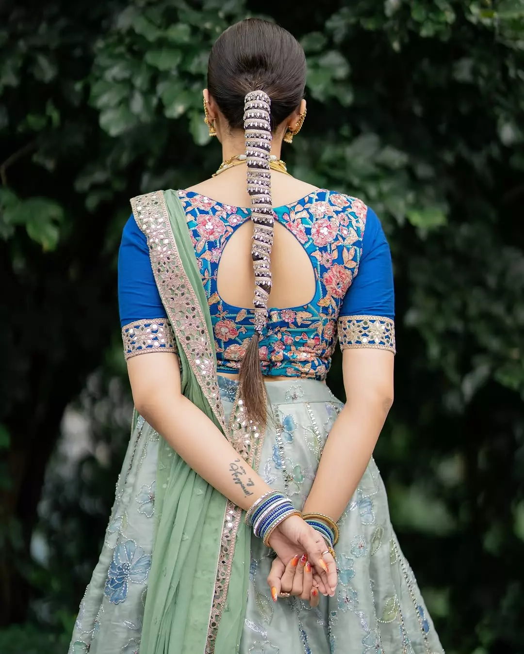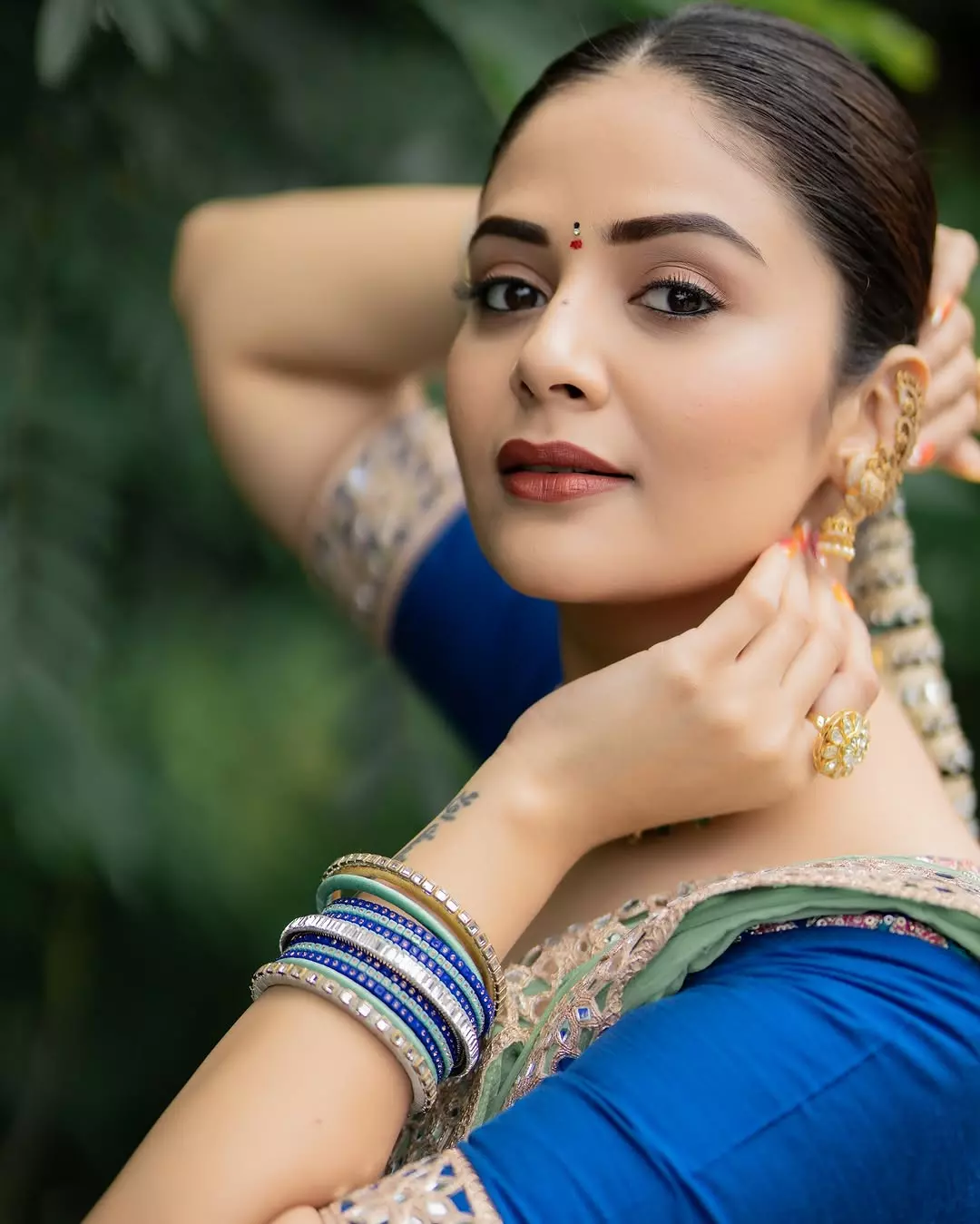 Sreemukhi proves yet again why she remains a trendsetter—effortlessly owning the traditional aesthetic while adding her signature modern flair. Truly, a vision in blue! 💙✨