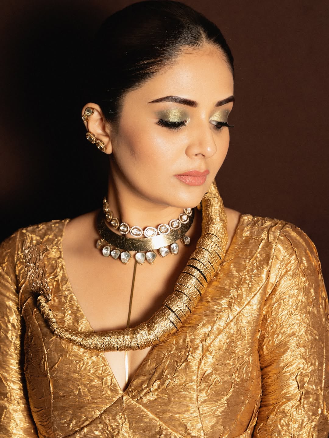 Sreemukhi shared a stunning picture on Instagram where she looked graceful in a gold, green, and blue lehenga. Her outfit was designed by Ballika Boutique by Sahasra, and the styling was done by Greeshma Krishna. She completed her look with jewellery from Taara Handpicked Jewellery, makeup by Gelegant Makeover Studio, and hair styling by Mahesh Ravulapalli. The photo was beautifully captured by Manoj Gangula. Her caption read:“sreemukhi Styling @greeshma_krishna.k Outfit Ballikaboutiquebysahasra Jewellery taara_handpicked_jewellery PC manoj_gangula Makeup Gelegantmakeoverstudio Hair Omahesh_ravulapalli #sreemukhi.”