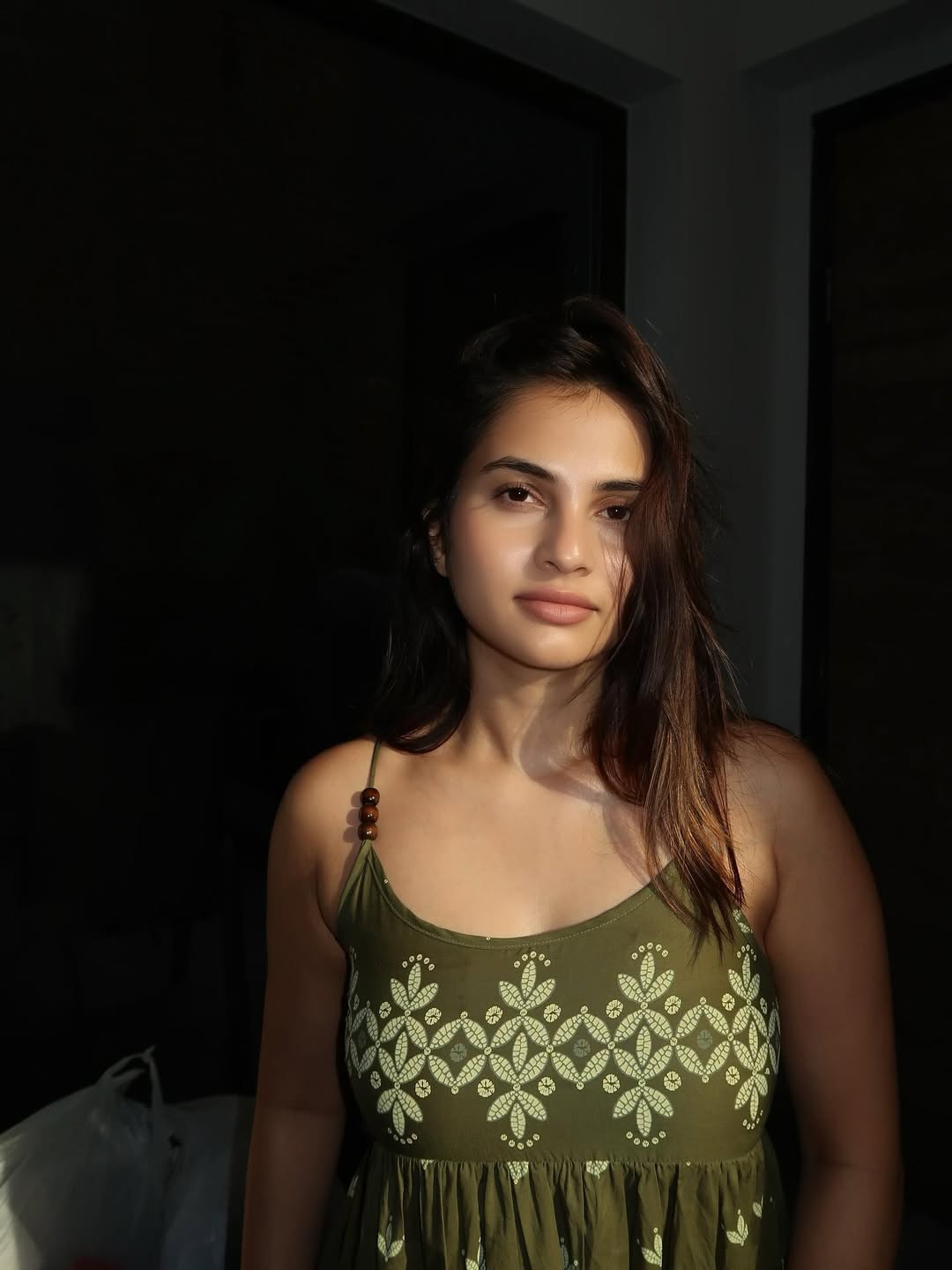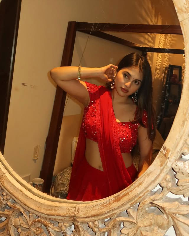 She added a poetic caption in Telugu that read, “Rendu kallu moosukunnaa Laagu mari nee vaipu 👀”, which loosely means “Even if I close my eyes, I still feel drawn towards you.” The caption, along with her serene expression, caught the attention of her fans.