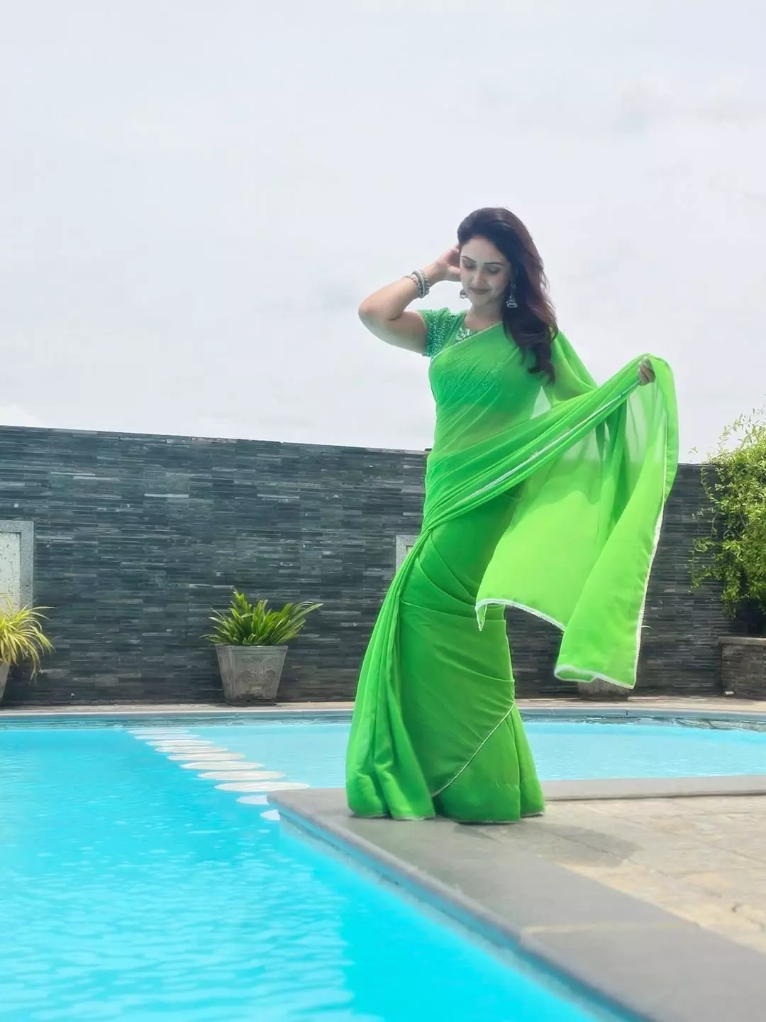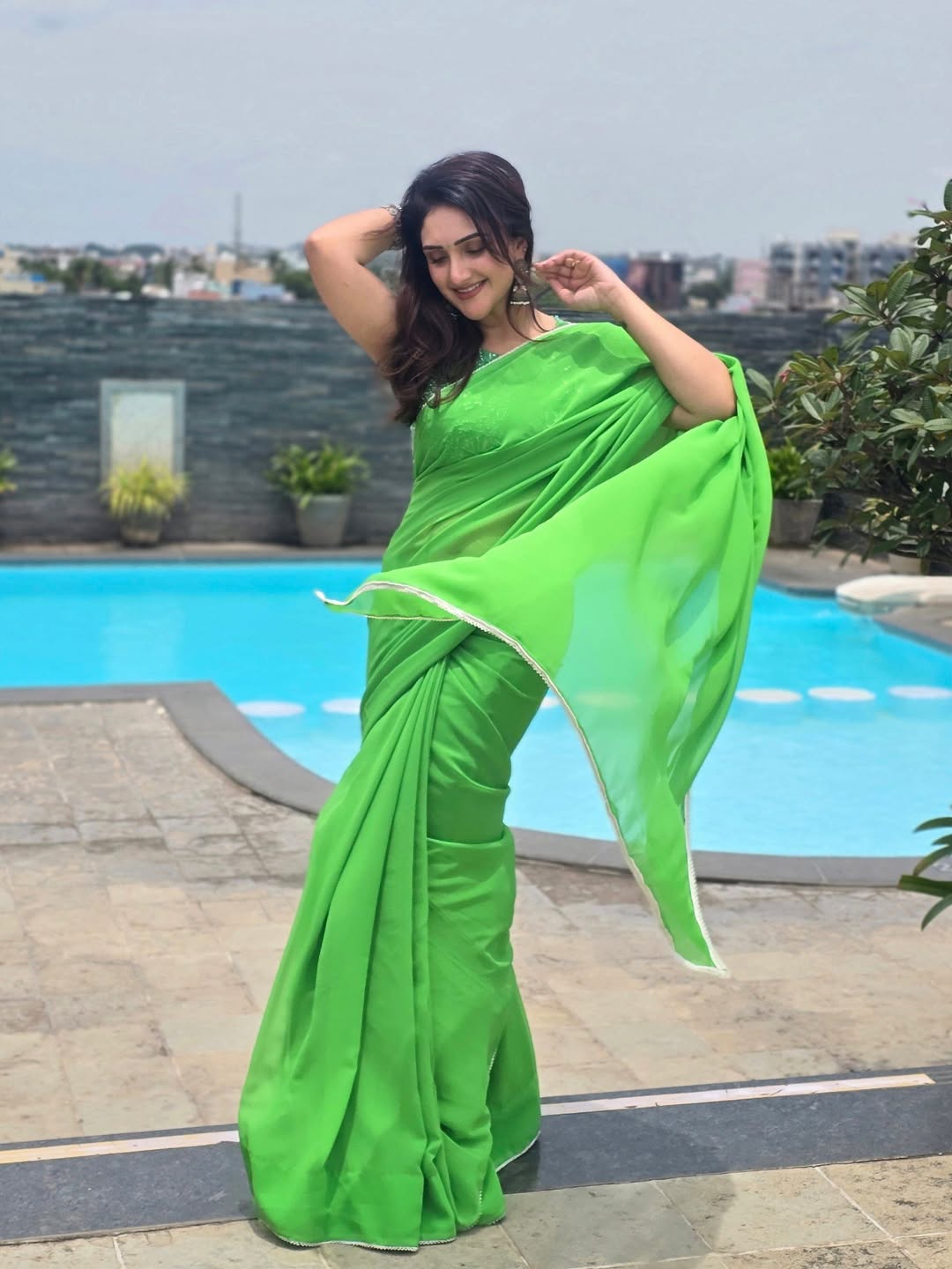 Sridevi Vijaykumar shared a new picture on Instagram. She looked calm and radiant in a green saree as she posed near a pool. Her caption was a single green heart emoji followed by hashtags:“💚 #sundarakanda #sundarakandaonaug27th #vinayakachavithi.”The post quickly received love from her followers. Many expressed their happiness about her upcoming film.