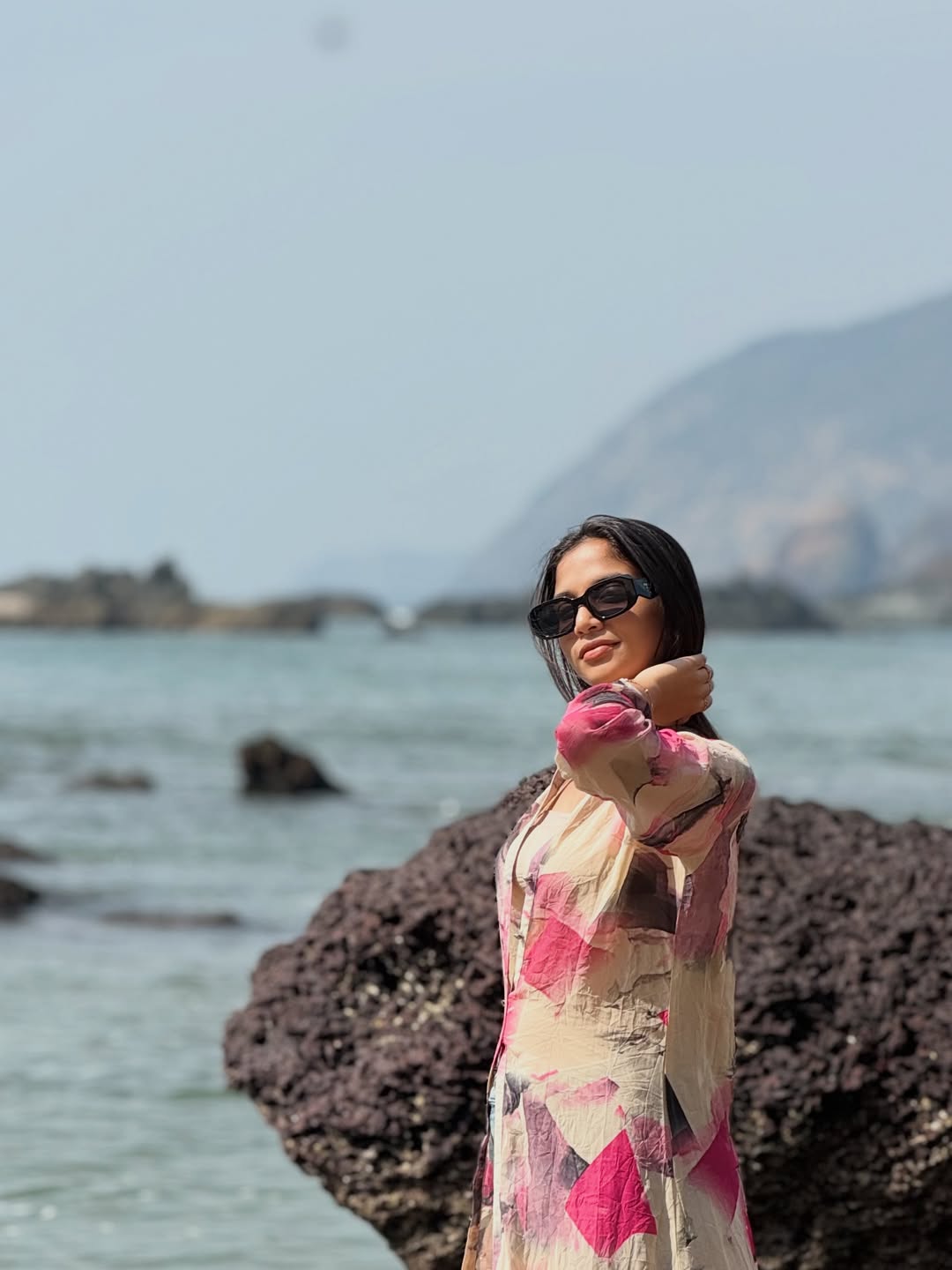 Telugu actress Sridevi (known for her breakout role in Court) wraps up the year with a delightful Goa getaway, captured in this vibrant photo.