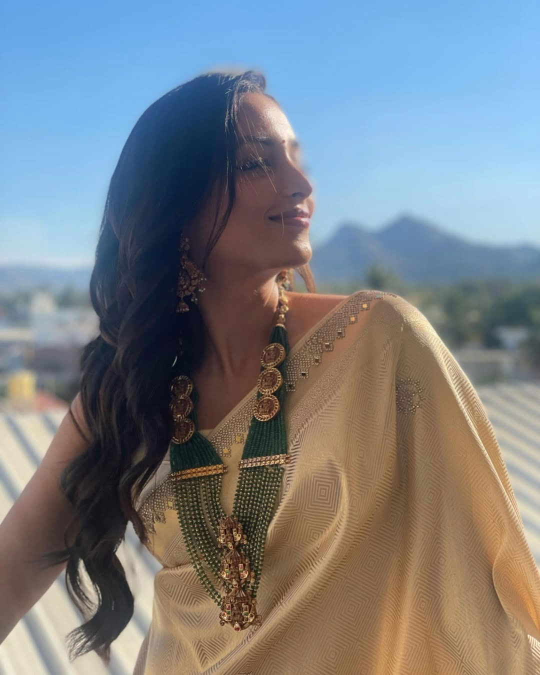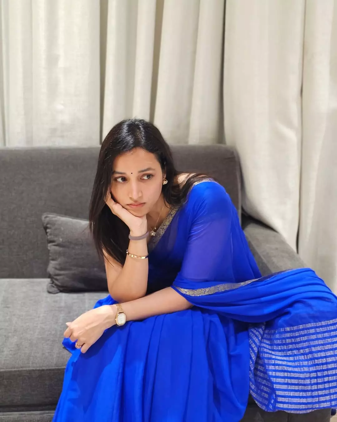 Actress Srinidhi Shetty shared a new picture on Instagram, and fans are loving it! In the photo, Srinidhi looks graceful in a bright blue traditional dress. She is seen sitting on a sofa, resting her face on her hand, lost in thoughts. Her simple jewellery including a watch, bracelet and earrings. With her natural makeup and charming smile, she looked very pretty.