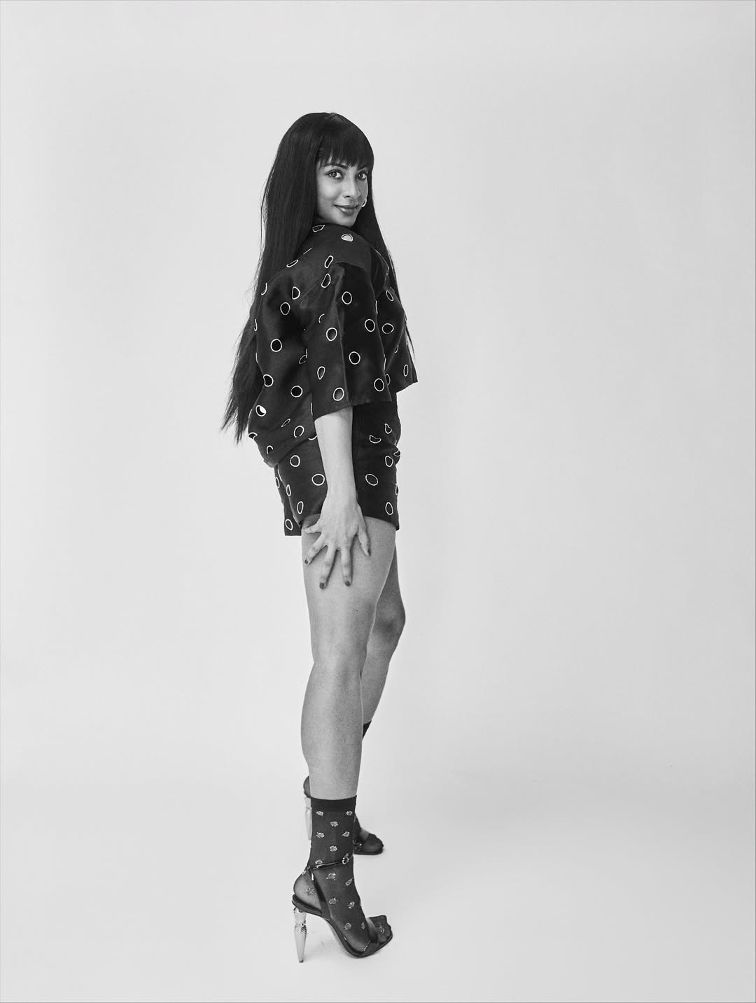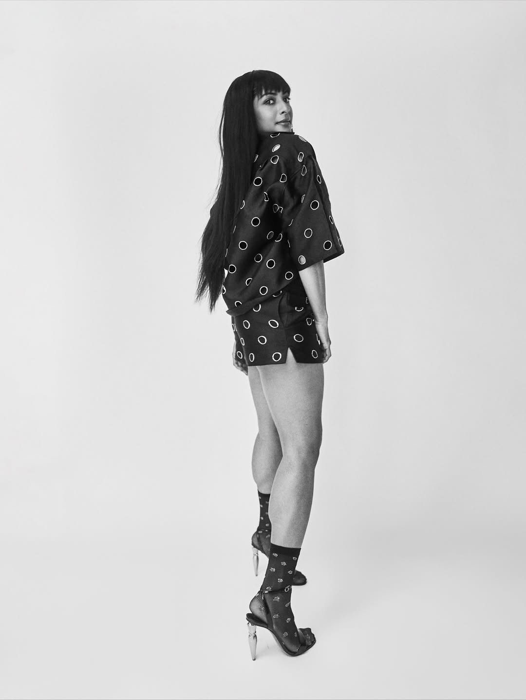 Sriya Reddy shared a new post on Instagram. She looked stylish in a black printed set. She posed with confidence in front of the camera. The picture was captured by 📸 @ishan.nj.giri. Her caption also credited the team behind her look. Make up was done by @sandysartistry. Hair was styled by @sachindakoji-_pro. Styling was handled by @jukalker. The dress was from @sandroparis. Shoes were from @christianlouboutin.