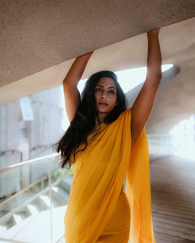 In another striking frame, Sriya lit up the scene in a vibrant yellow saree, her braid delicately adorned with pink flowers. The look perfectly blended tradition with style, reflecting her innate elegance and confidence.