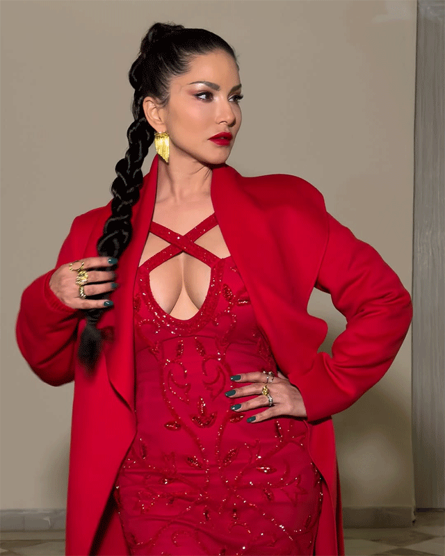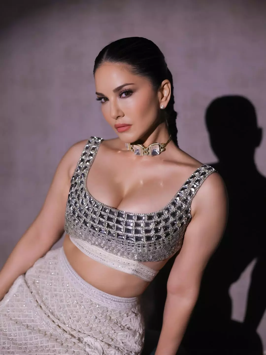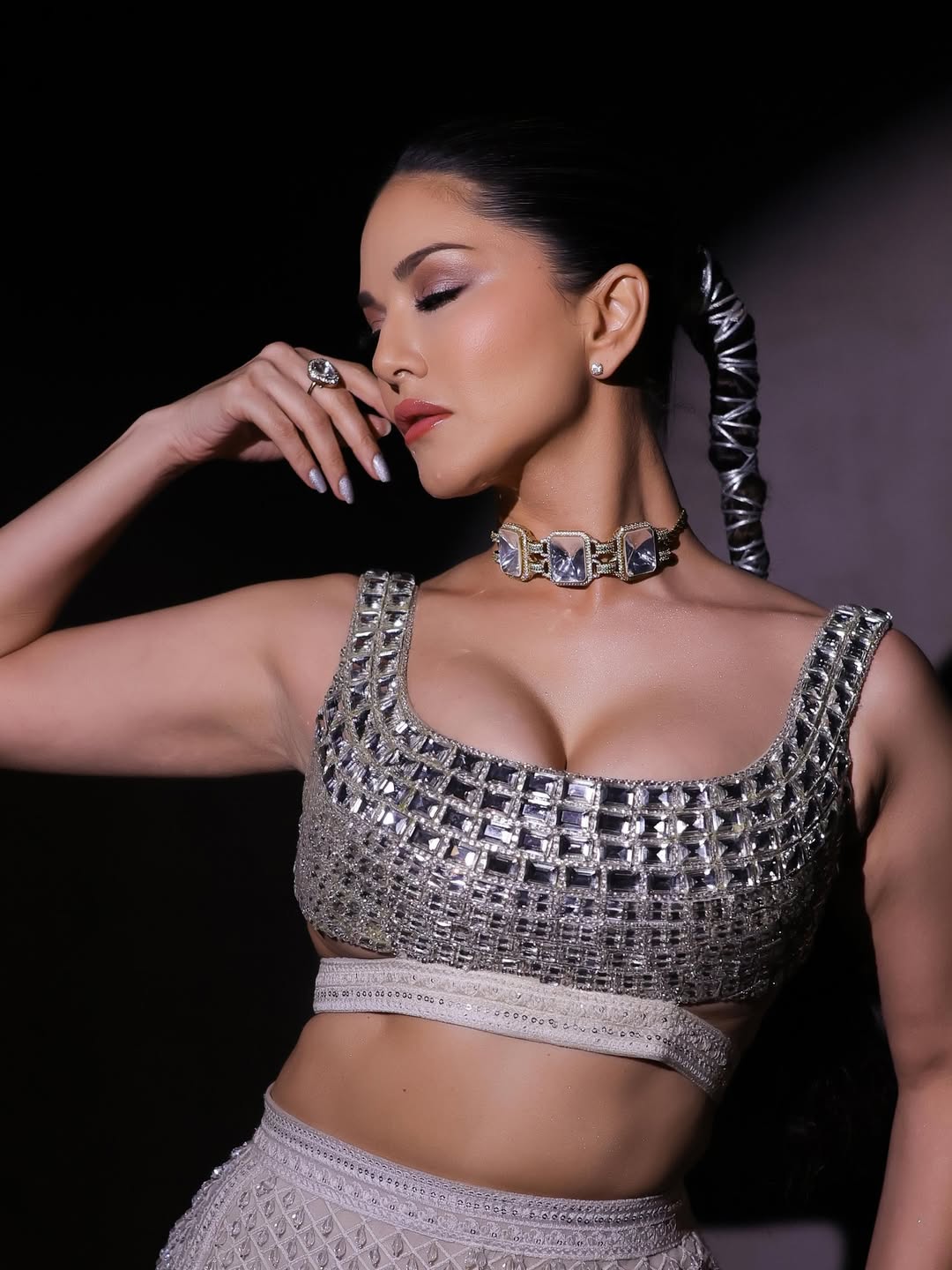 Sunny Leone turns heads in this edgy and glamorous photo, effortlessly blending bold fashion with her signature allure.