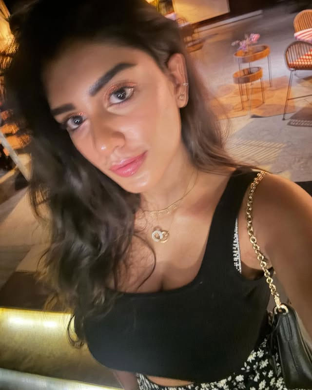 Her subtle tattoos, layered necklaces, and bold gaze added an edgy, youthful charm to the casual yet seductive look.