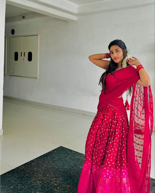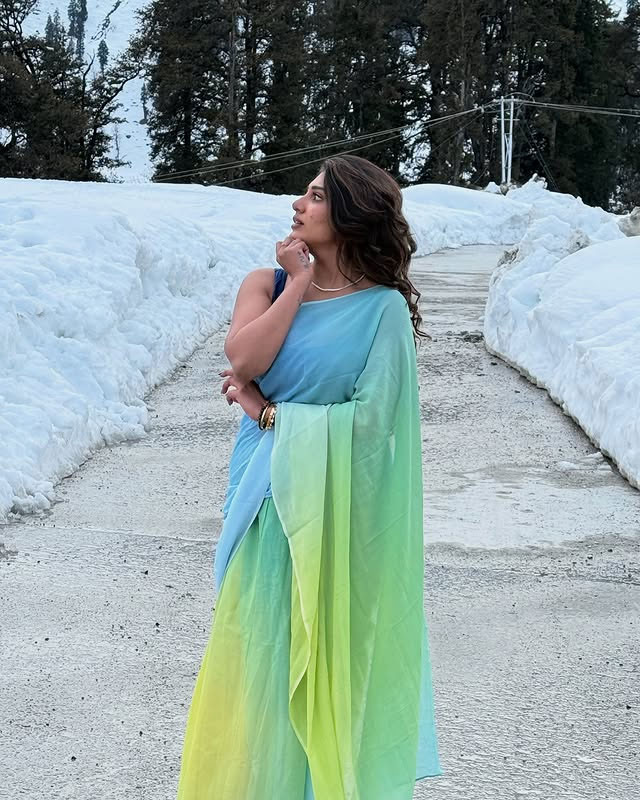 Supritha’s recent Instagram picture is catching attention. She wore a blue and green saree. The soft colors gave a refreshing feel.