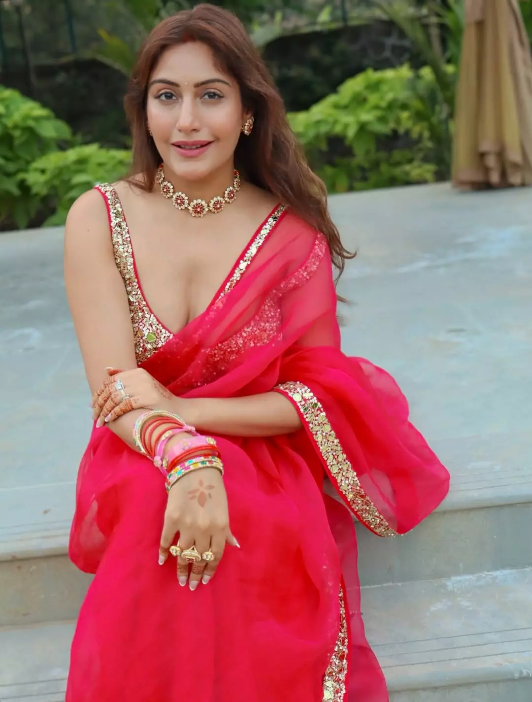 Actress Surbhi Chandna exudes unmatched grace and quiet strength in her latest gallery capture, where she stands poised in a rich maroon dress, radiating elegance and purpose.