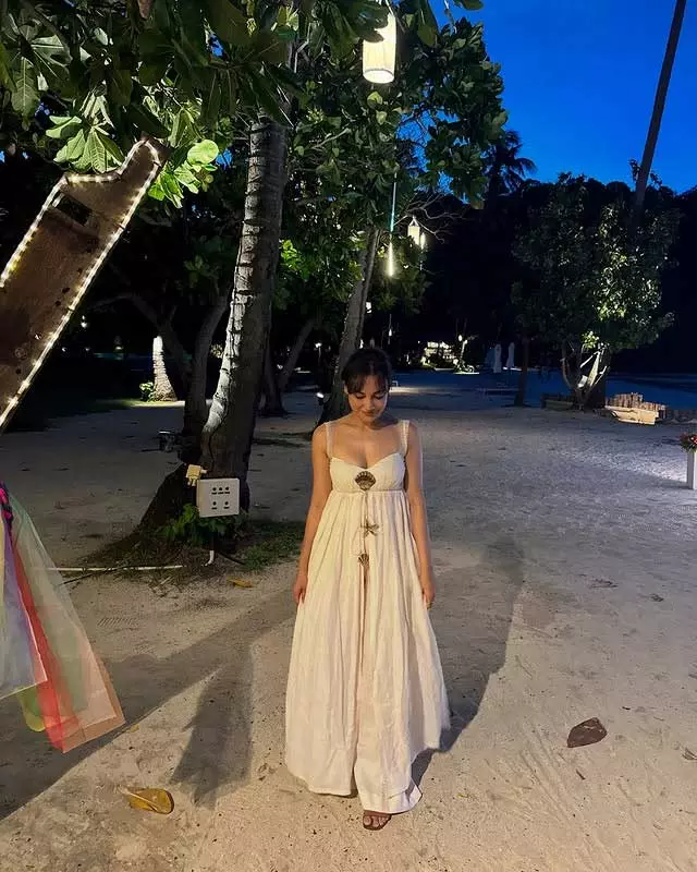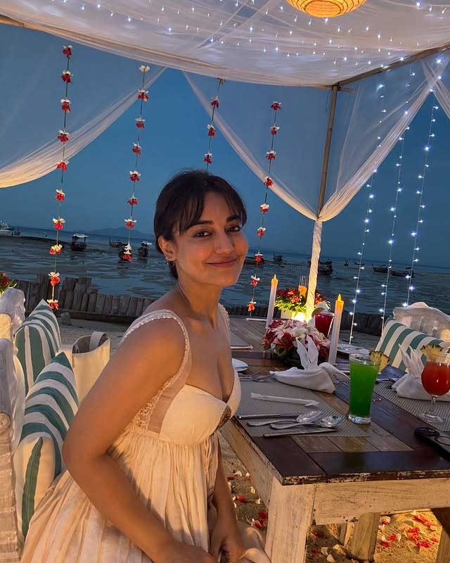 By: Tupaki Desk | 5 Jun 2025 4:54 PM ISTIn a recent Instagram post, popular Indian actress Surbhi Jyoti shared a dreamy picture from a beachside dinner setup. Dressed in a soft cream gown with delicate straps, Surbhi looked elegant and relaxed. The setting was beautifully decorated with fairy lights, candles, and flowers, creating a romantic and peaceful vibe. With her eyes closed and a calm smile, Surbhi seemed to be enjoying the serene moment. Her caption included a simple evil eye and heart emoji, reflecting positive energy and peace.