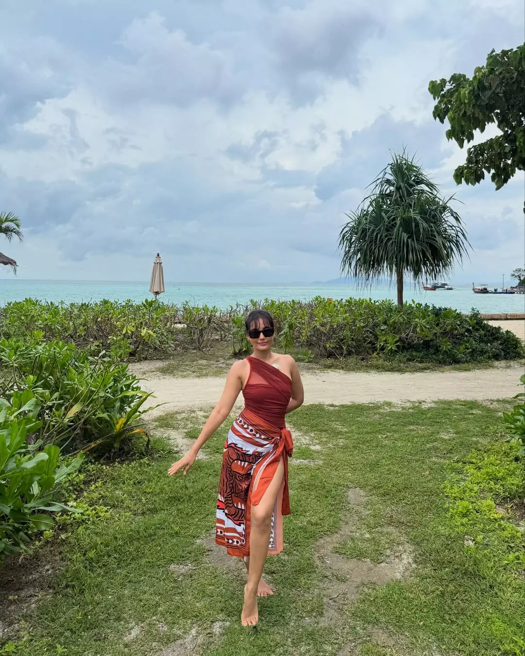 When Surbhi Jyoti hit the beach in Thailand, it wasn’t just a walk—it was a strut with purpose. Dressed in a one-shoulder red monokini kind of dress with a thigh-high slit, she brought heat to the already-sunny Phi Phi Islands. The wind, the waves, and Surbhi’s effortless vibe—all in sync.
