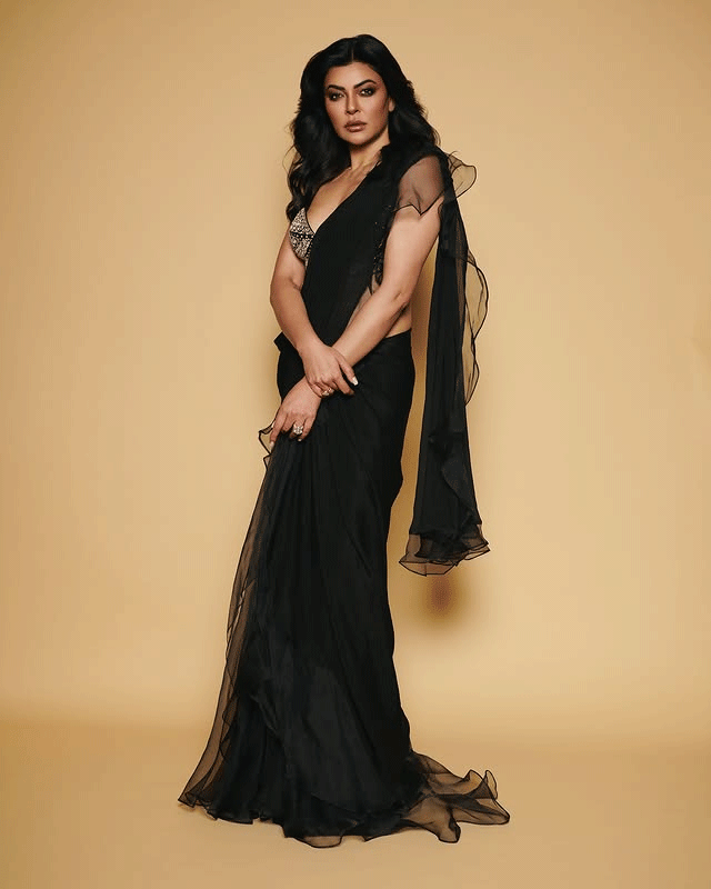 Actress and former Miss Universe Sushmita Sen is redefining what it means to age gracefully and powerfully. In her latest Instagram post, Sushmita stunned fans in a bold black saree paired with a shimmering embellished blouse. She proved yet again that age is just a number when it comes to style and confidence.