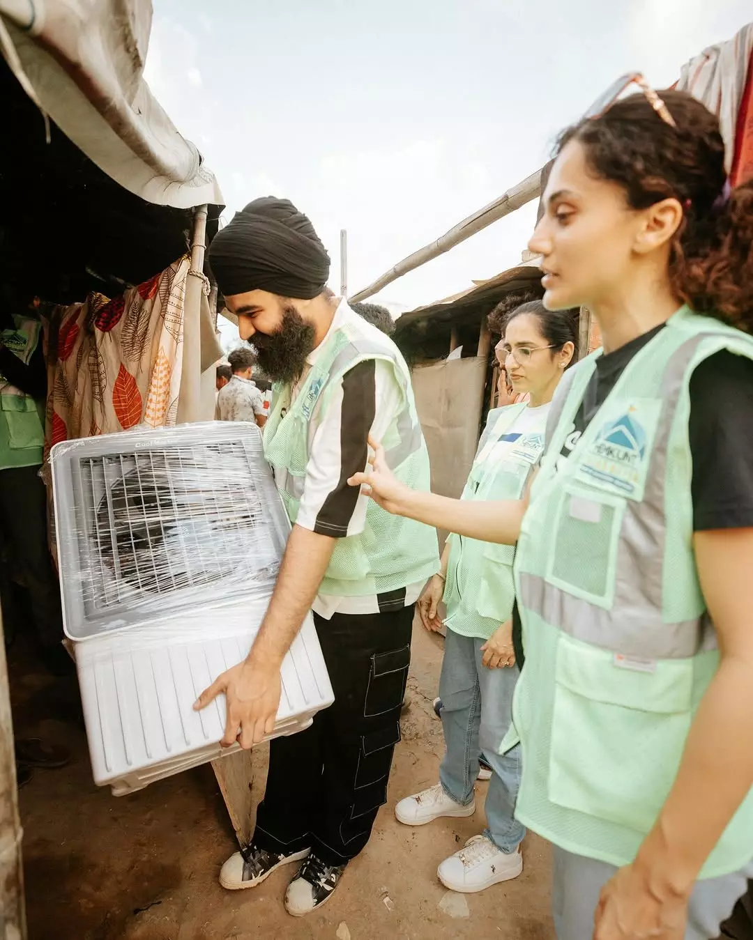 Taapsee Pannu recently shared a heartfelt post on Instagram that touched many people. In the photo, she is seen wearing a green vest casually dressed and interacting with people in what looks like a social service activity. Along with the photo, her caption talked about how love, happiness and privilege grow when they are shared. She also encouraged people to take action now and help others saying there is no better day to start than today.