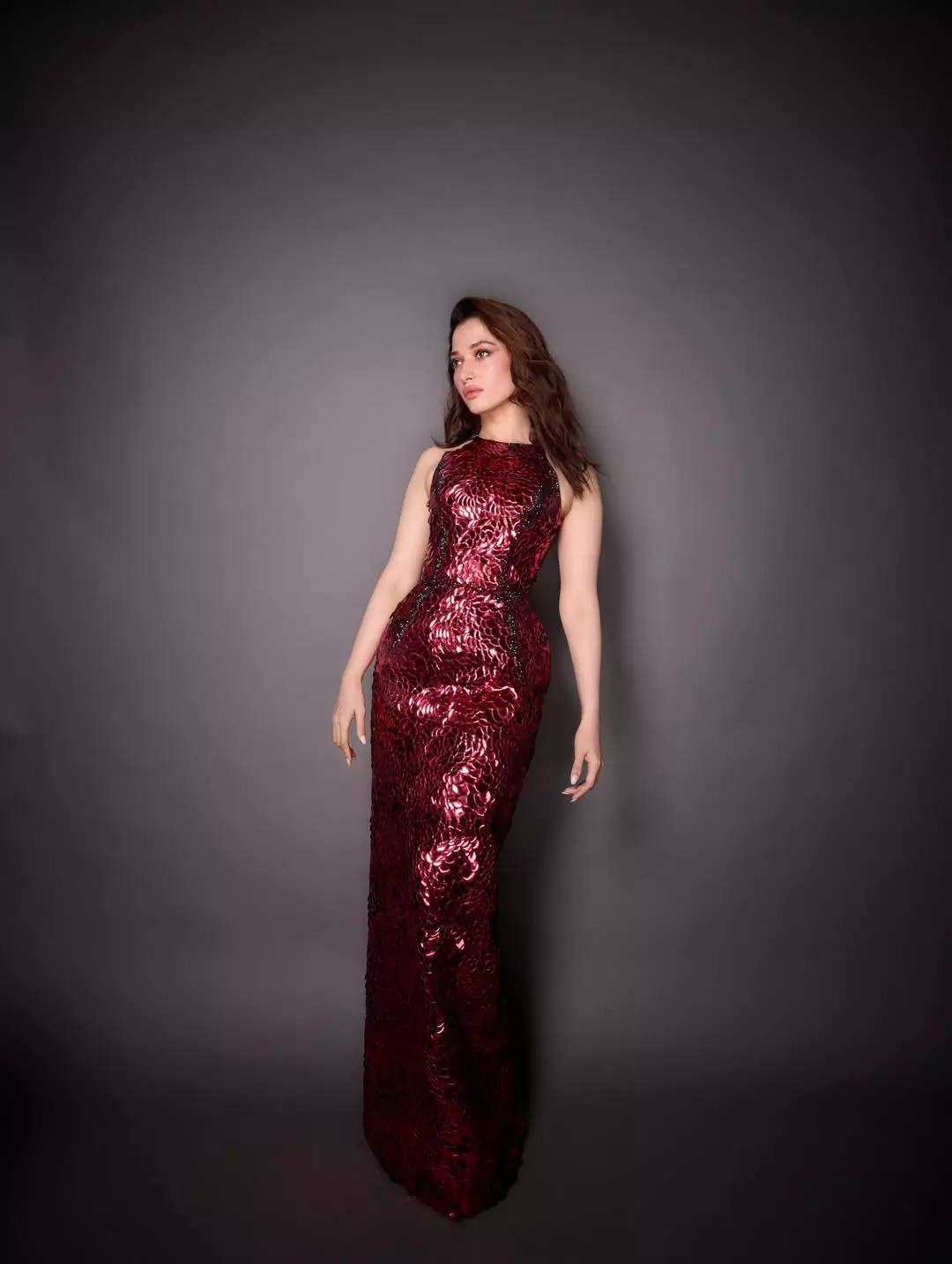 Tamannaah Bhatia Dazzles in Red Glamour at Filmfare Awards 2025