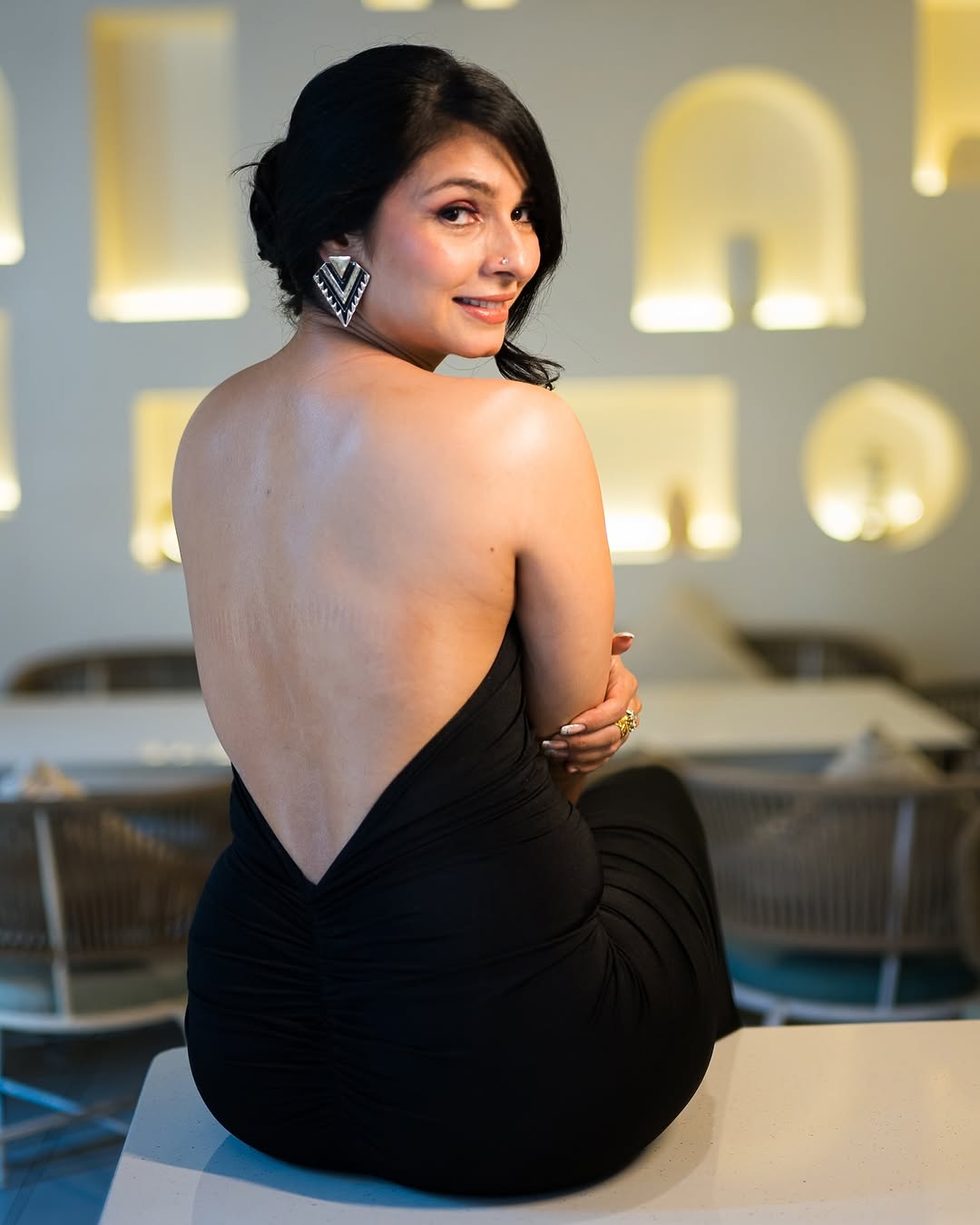 Photos by @lsd.photography.official, dress sby sayaanikaofficial x @ektara-_world, nake up @makeoverbysejalthakkar, stylist @zubeda-_hairstylist. The location is @millerhousebarandkitchen.