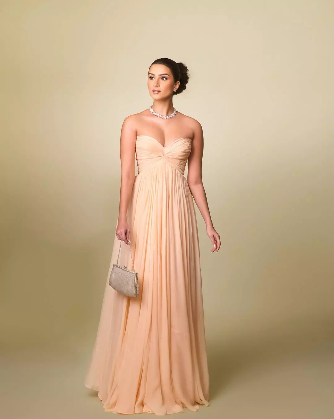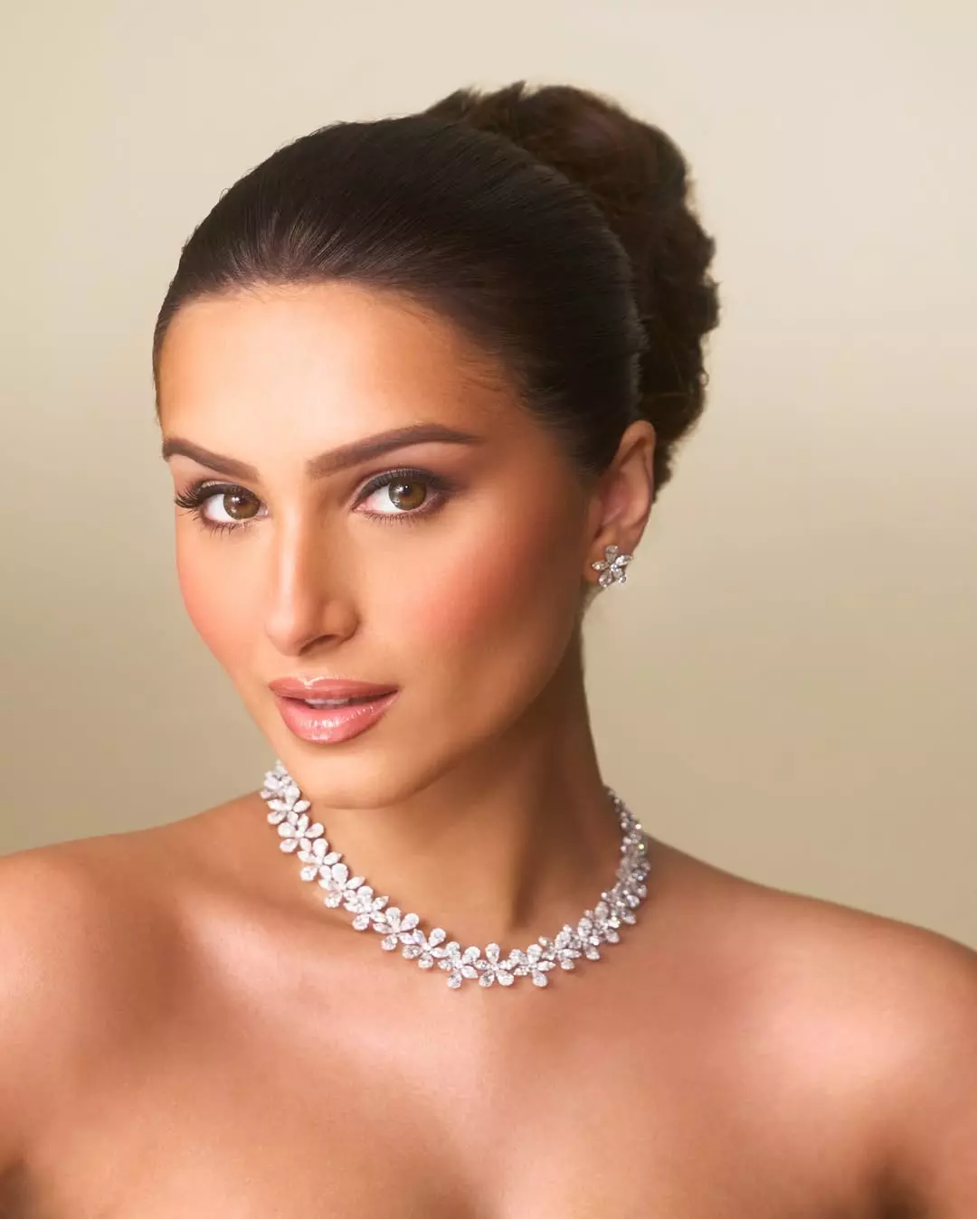 Styled by Tanya Ghavri, the look highlighted Tara’s graceful persona, with carefully selected accessories adding subtle sparkle without overshadowing the intricate detailing. Jewelry by Prerto complemented the champagne tones, enhancing the luxurious and festive vibe, while the styling team, assisted by Ekkta Shah, ensured every element—from drape to embellishment—was flawless.