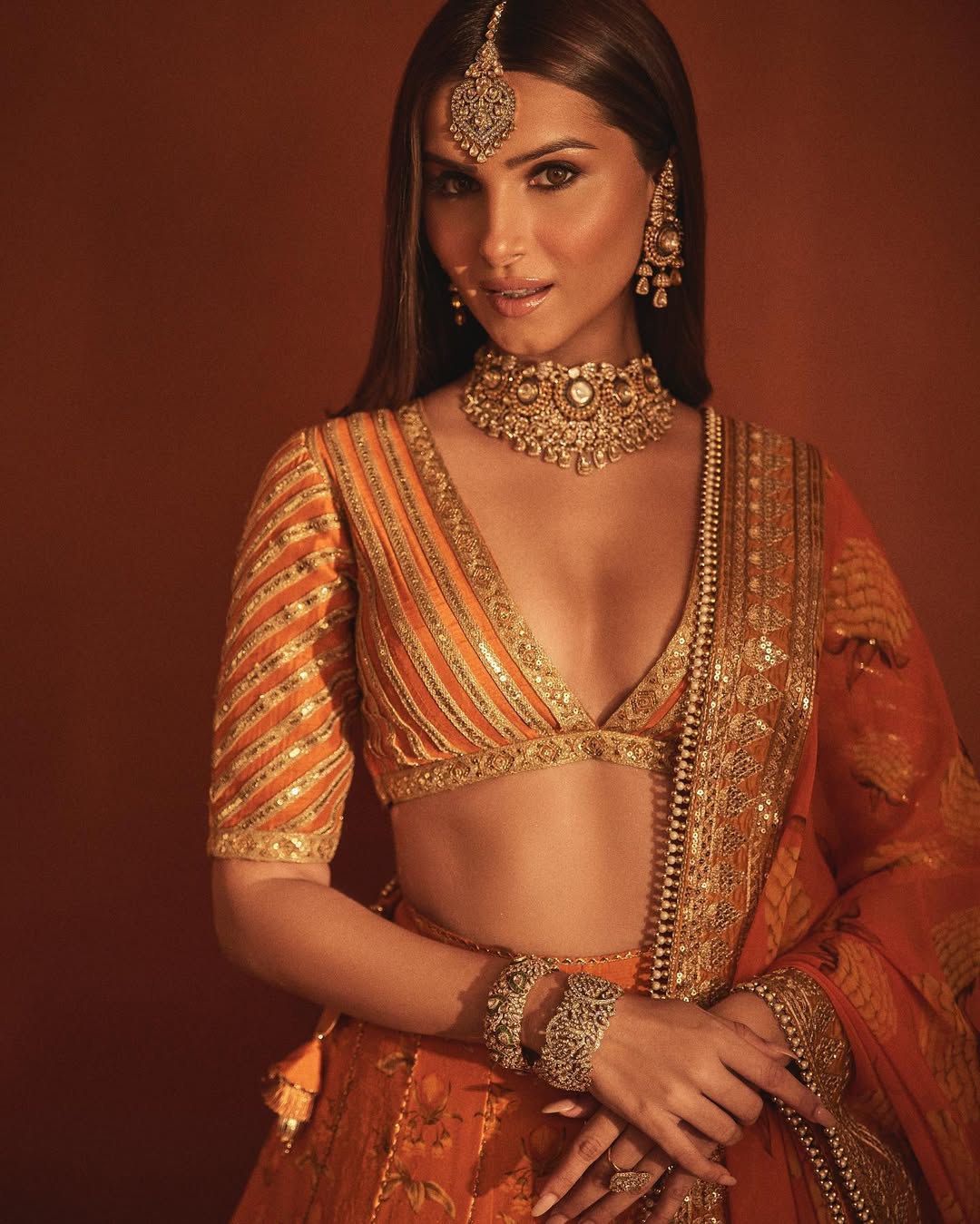 Tara Sutaria Stuns in Champagne Lehenga for Wedding Season