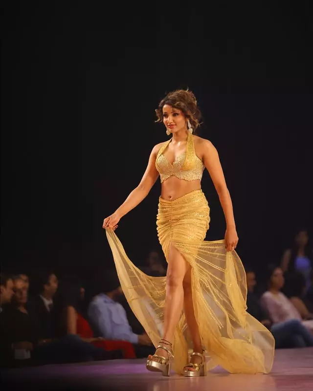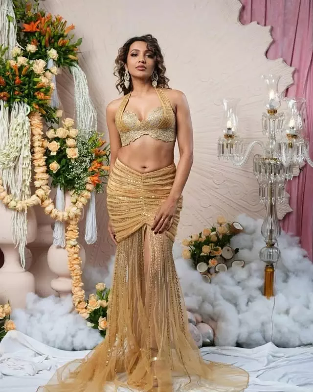 In the recent Instagram post, Tejaswi walked for Teach for Change with Lakshmi Manchu. The event was co-hosted by Novotel Hyderabad. Premier Energies was the title sponsor. Faces by Kubra Maqdoom powered the show. Her dress was designed by Swathi Veldandi. She wore jewelry from Aabharanam Jewellers. Styling was done by Official Anahita. She wore shoes from September Shoes. Photography was by TDF Studioz. Her hair and makeup were done by The Art Beat Salon. Decor was by Evento Entertainments. Her golden ethnic wear matched the floral decor. She paired it with long curls and big earrings.