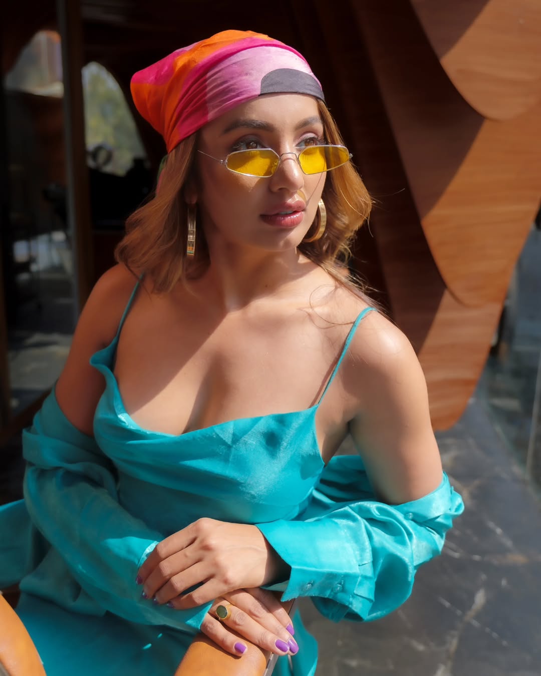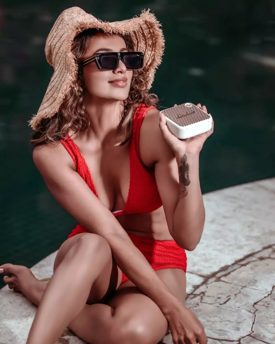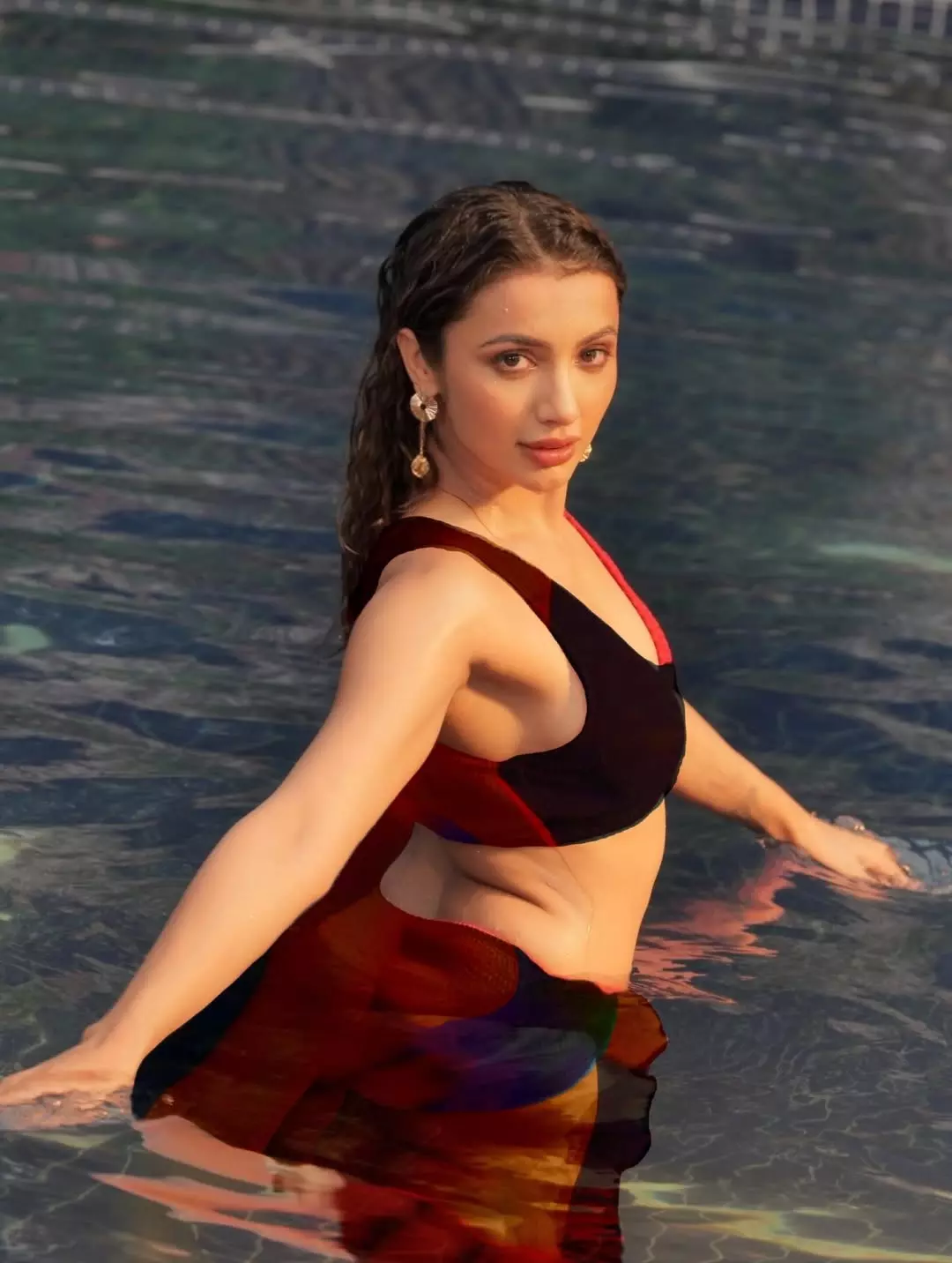 In this stunning poolside photograph, Tejaswi Madivada radiates effortless glamour and confidence.