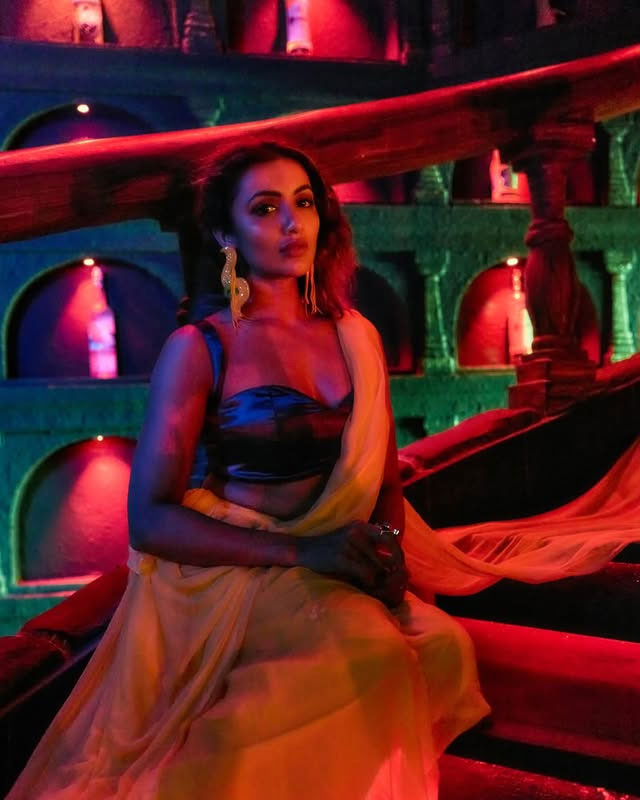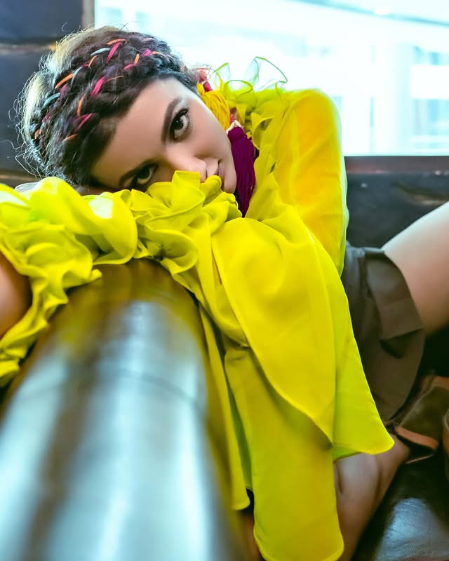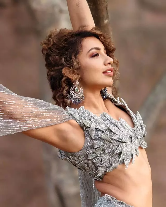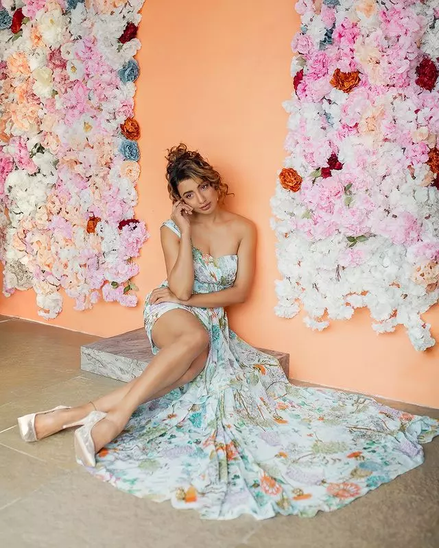 This look demonstrates Tejaswi’s fearless approach to fashion, blending minimalistic clothing with maximalist accessories for an eye-catching effect. Whether styled as a bandeau top or a mini dress, the outfit emphasizes both versatility and high-fashion sensibility, showcasing her ability to make even simple pieces feel luxurious and memorable.