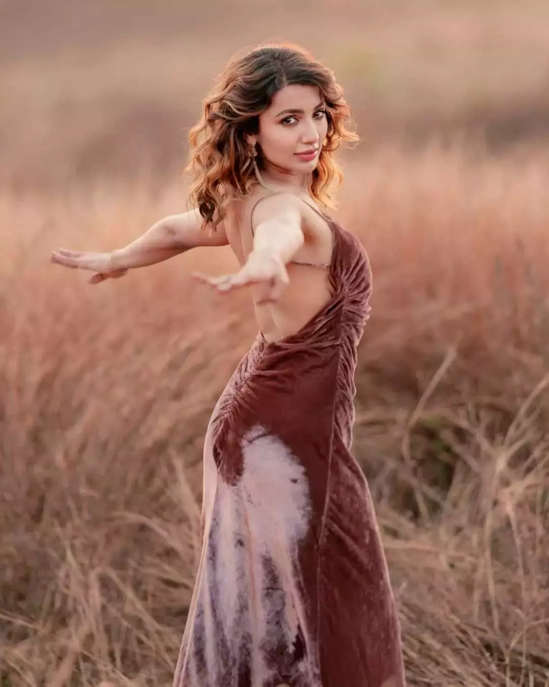Tejaswi is now making headlines for her presence on social media. Her recent posts have caught the eyes of many fans. In this image, she is wearing a simple yet elegant dress that complements the natural setting. Her caption reas "Chale toh kat hi jaayega!" And she looks absolutely amazing in these pics.