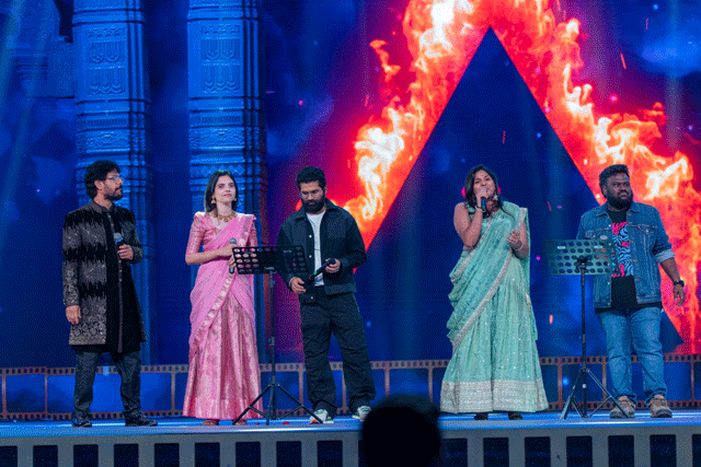 The event was graced by film legends including Nandamuri Balakrishna, Allu Arjun, S.S. Rajamouli, Dil Raju and Vijay Deverakonda, alongside political dignitaries like CM Revanth Reddy.