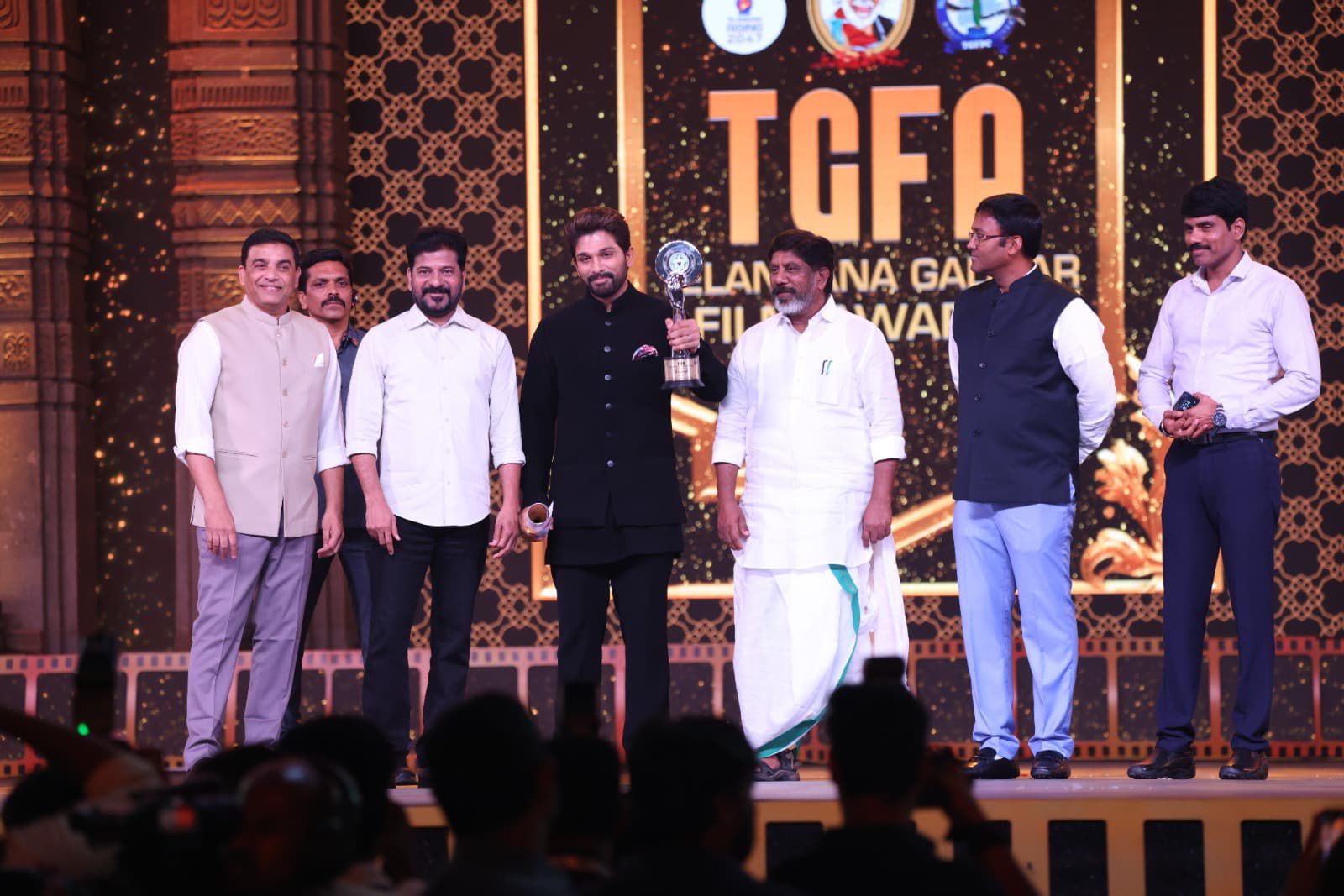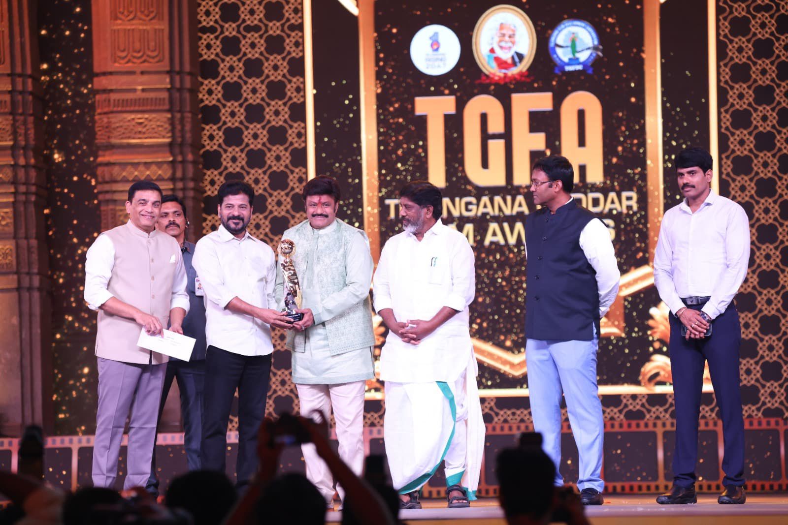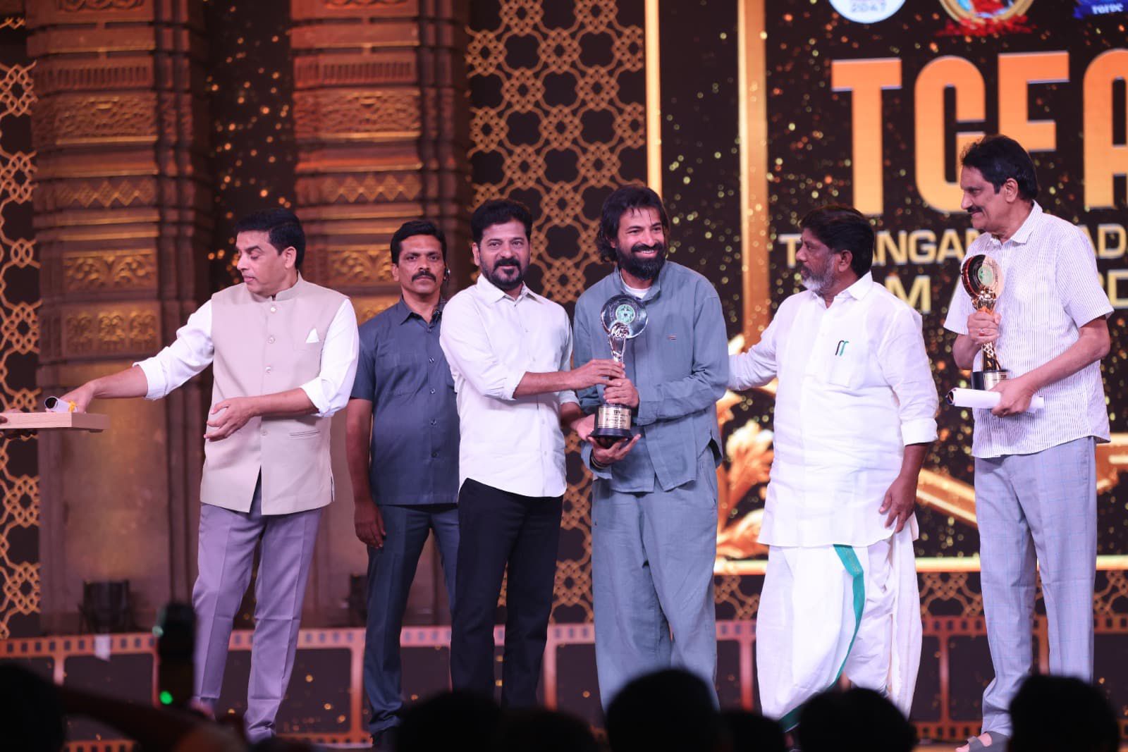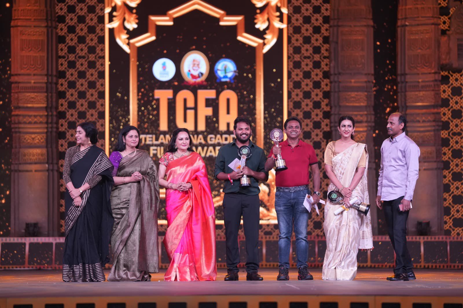 The Telangana Gaddar Film Awards brought the Telugu film industry together in a big way. For nearly 12 years, there had been no government-hosted film awards ceremony for Telugu cinema. However, in a move to encourage film artists, CM Revanth Reddy initiated the awards to honor the best movies, directors, actors, and actresses from each year since the formation of Telangana. Along with the T.G.F. (Telangana Gaddar Film) Awards, each winner also receives a cash prize of ₹5 lakhs.