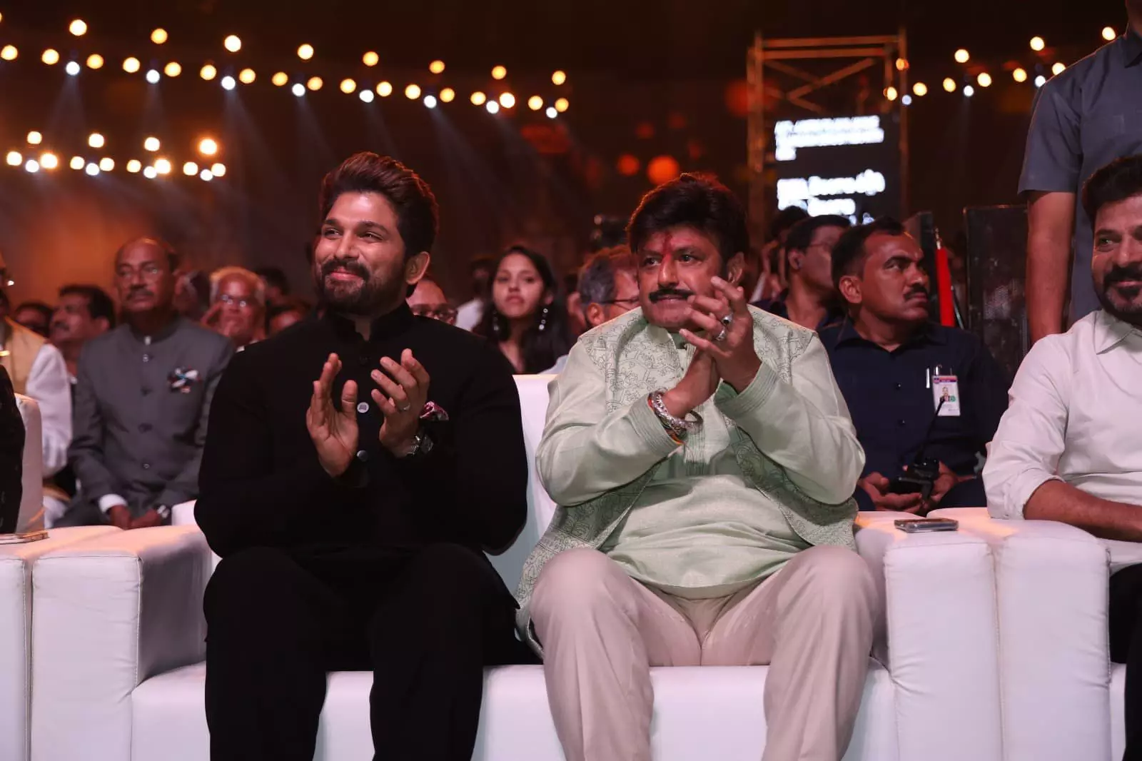 A major highlight of the event was a live musical performance by renowned music director Thaman. He entertained the audience with a medley of his hit songs from various films, adding energy and excitement to the celebration. Telangana Chief Minister Revanth Reddy graced the event as the chief guest. The entire ceremony was well-organized under the supervision of FDC (Film Development Corporation) Chairman Dil Raju.