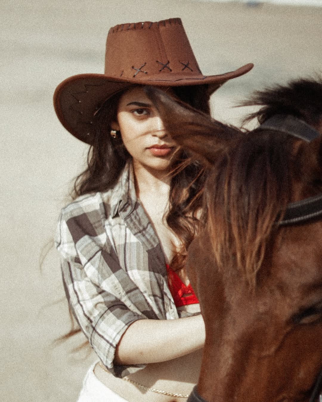 In this alluring photo, Bandhavi exudes sensuality and poise, seated on a dark couch in a shimmering velvet slip dress with thin straps, her long wavy hair framing a contemplative gaze against a warm, textured backdrop.As of early 2026, with Jaat recently released, no major upcoming movie projects have been announced for Bandhavi.