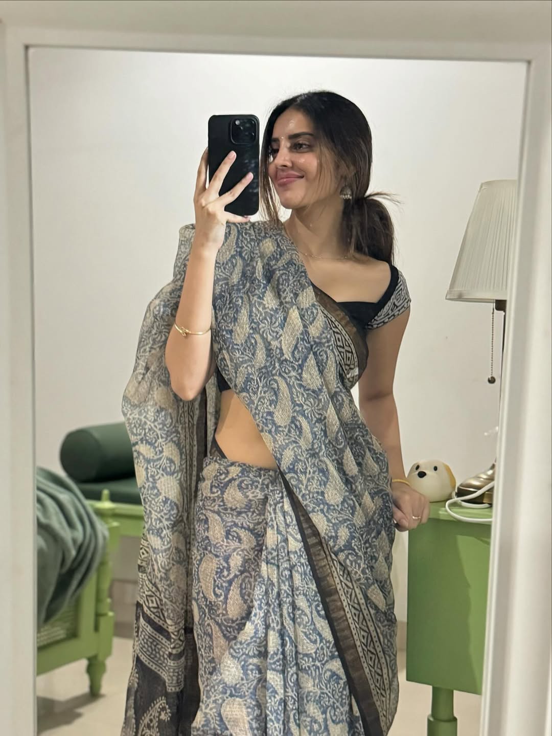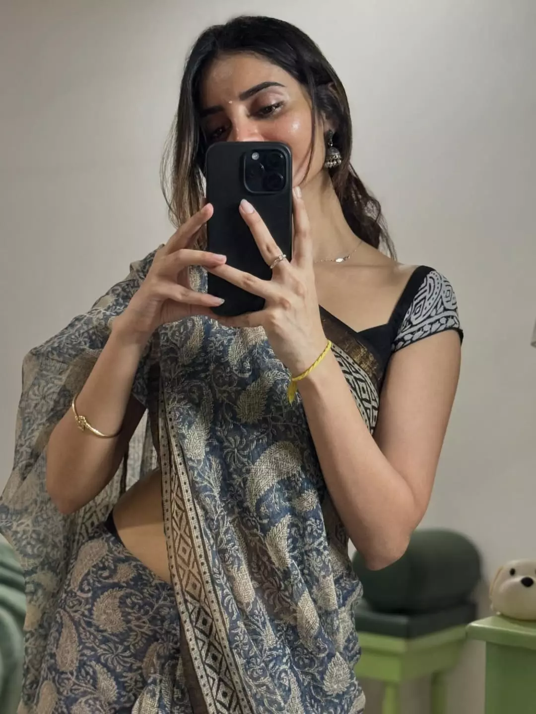 In her latest photoshoot, Kushita stunned in a sleeveless outfit, exuding sharp, confident looks. She also looked striking in sarees, where the sleeveless blouse added a radiant glow to her overall attire, making the images both attractive and unique.