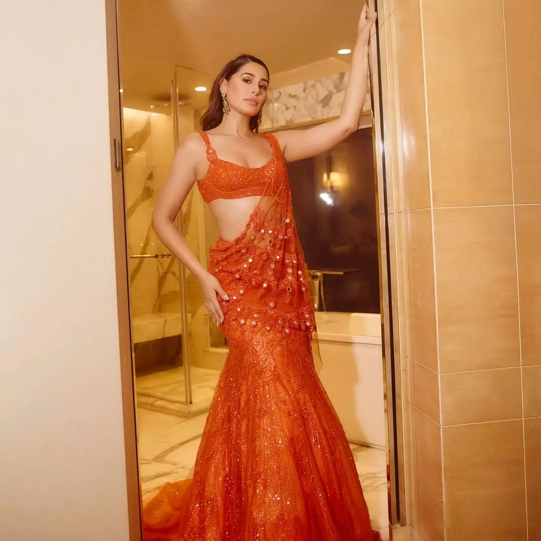 The Radiance of Orange: Nargis Fakhri’s Saree Attire