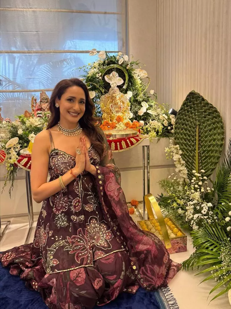 Pragya Jaiswal looked graceful in a purple kurti that gave her a vibrant and charming glow. Her traditional look perfectly matched the festive mood.