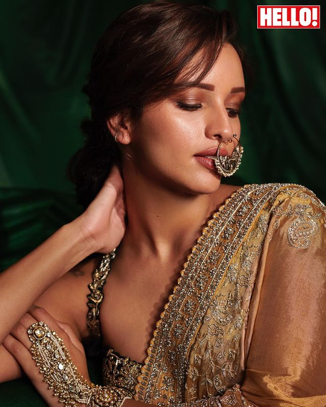 In this image, she is seen wearing a stylish blue ethnic outfit with silver accessories, showing off her elegant side. Her confidence and beauty are winning hearts on social media.