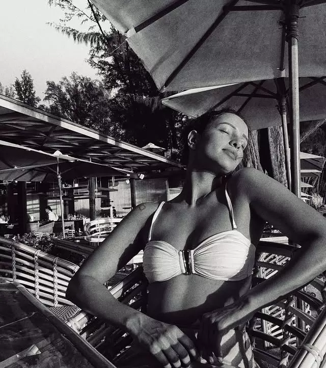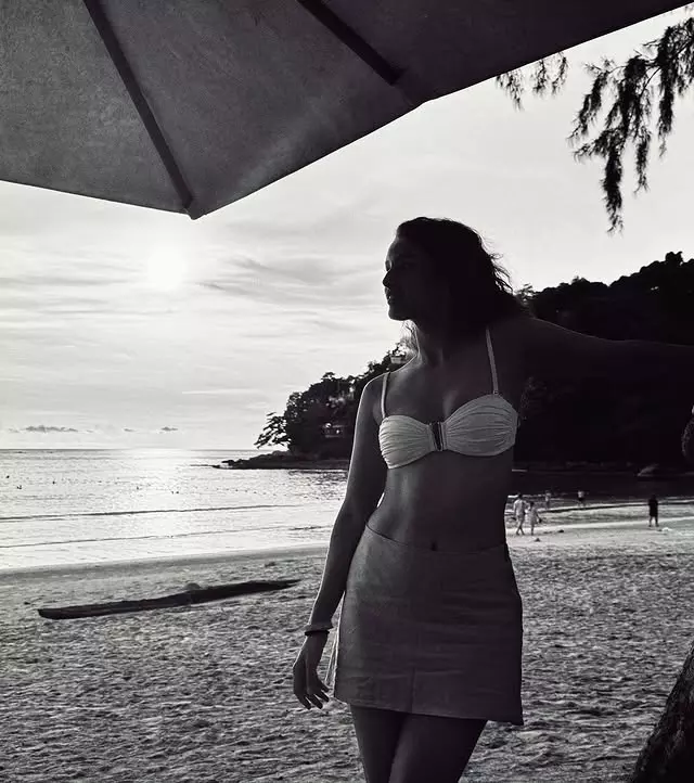 She is seen earing a chic white crop top and a simple blue skirt. Her caption, "Letting the calm sink in..." perfectly matches the mood. Isn't it amazing how one picture can make you feel so peaceful?