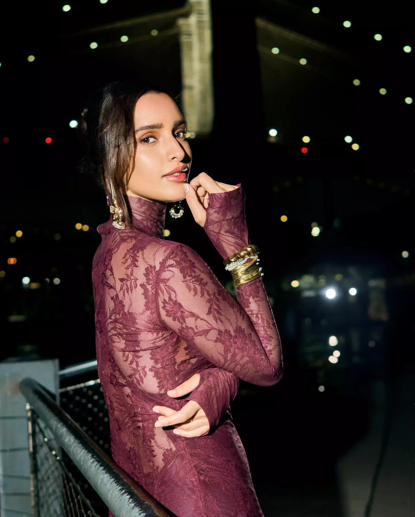 Actress Triptii Dimri recently took to Instagram to share a breathtaking picture that left her fans in awe. In the photo, Triptii is seen standing gracefully against a backdrop of a glittering city skyline at night. She looked elegant in a maroon lace dress with long sleeves, radiating poise and confidence. The lights of the city behind her added a magical charm to the frame. She captioned her post with a simple heart emoji.