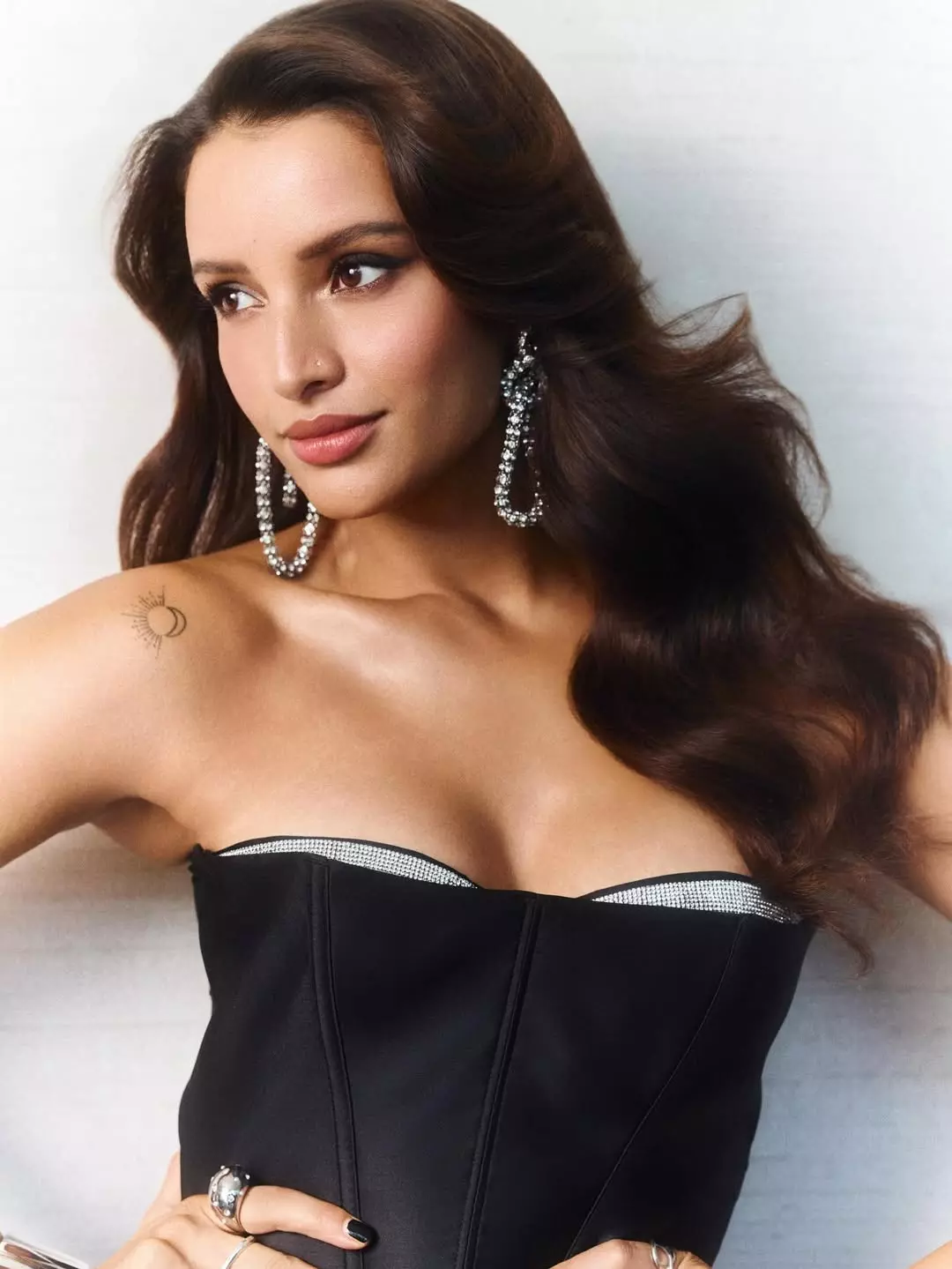 In this striking gallery moment, Triptii Dimri exudes a blend of timeless elegance and contemporary boldness. Styled in a structured black corset that accentuates her silhouette, she embraces a look that feels both classic and fashion-forward. Her voluminous, softly waved hair frames her face beautifully, while the subtle glow of her makeup enhances her natural features without overpowering them.