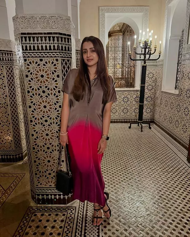Trisha Krishnan recently shared a stunning photo on Instagram where she is seen wearing a stylish pink dress.