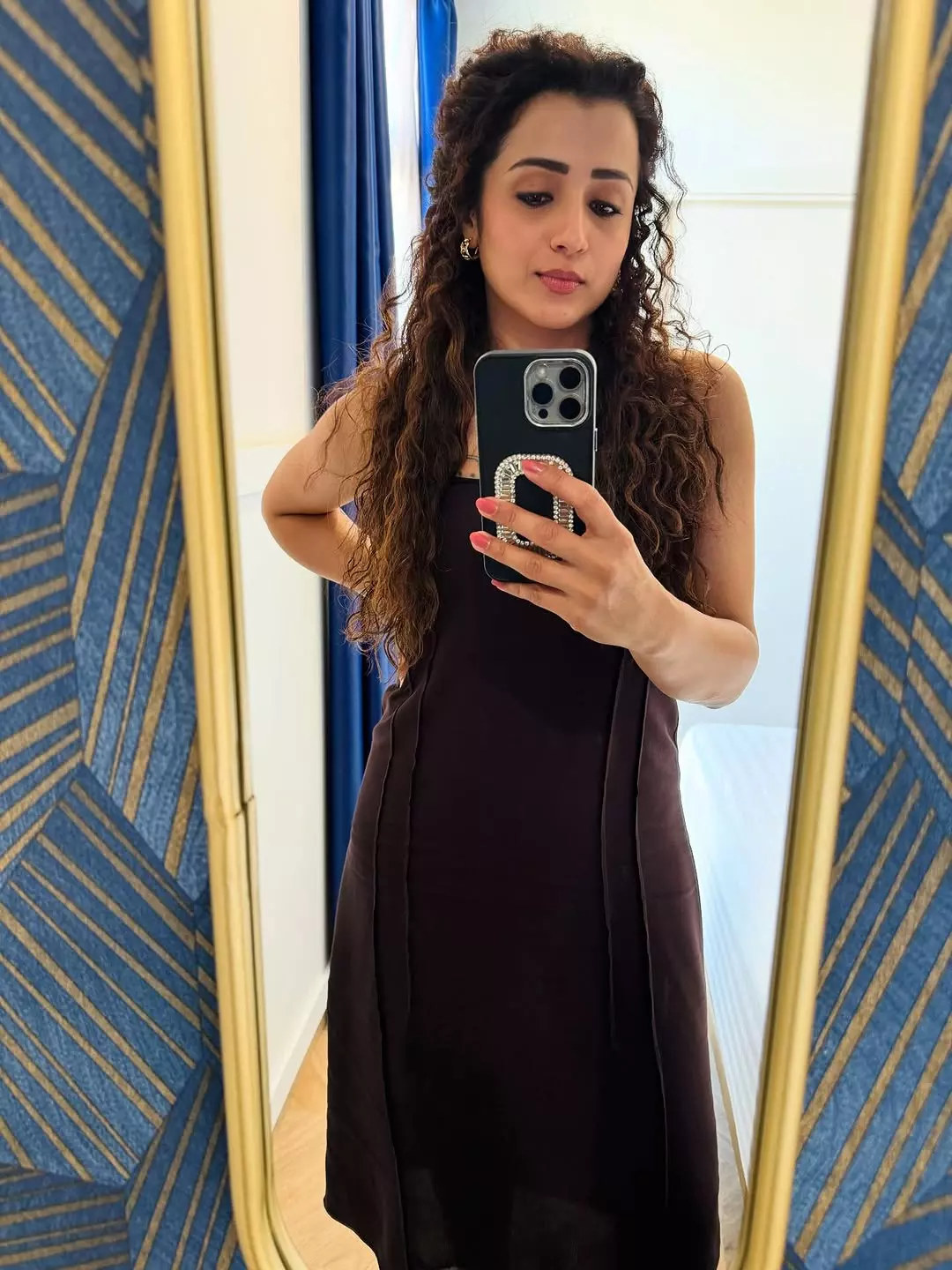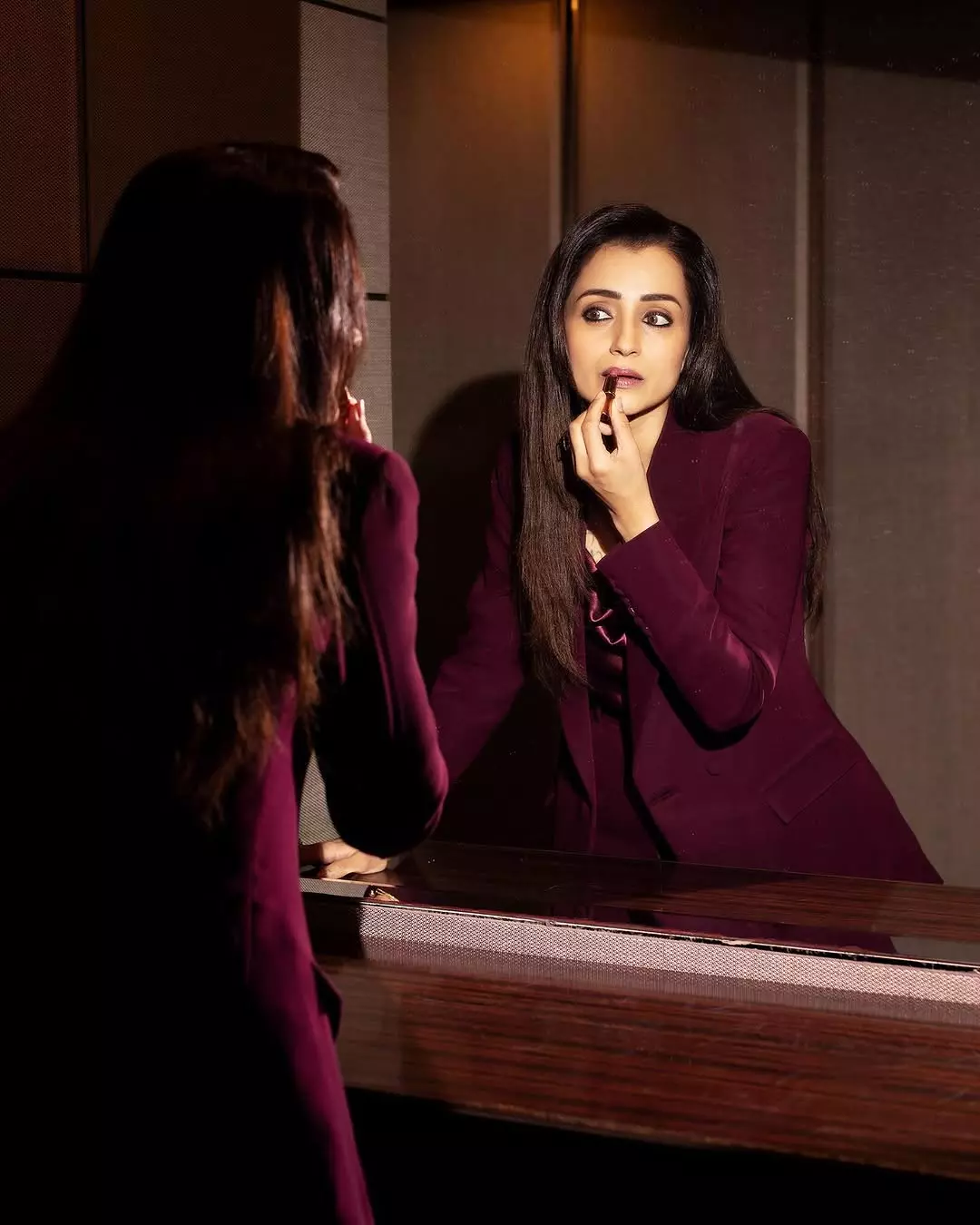 Trisha Krishnan is winning hearts once again both on and off-screen. The actress recently shared a stylish mirror selfie on Instagram wearing a smart grey co ord set. The strapless vest and matching trousers gave her a modern boss lady vibe. With her curly hair falling gracefully and minimal accessories, Trisha looked elegant and confident. Her caption, �Nandri mammeyyyyy��, was a sweet thank you note to her fans.