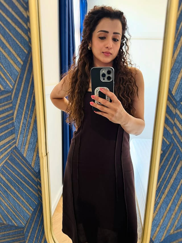 This stylish look was part of the promotional campaign for her upcoming film Thug Life. Trisha captioned her post with a simple “!?”